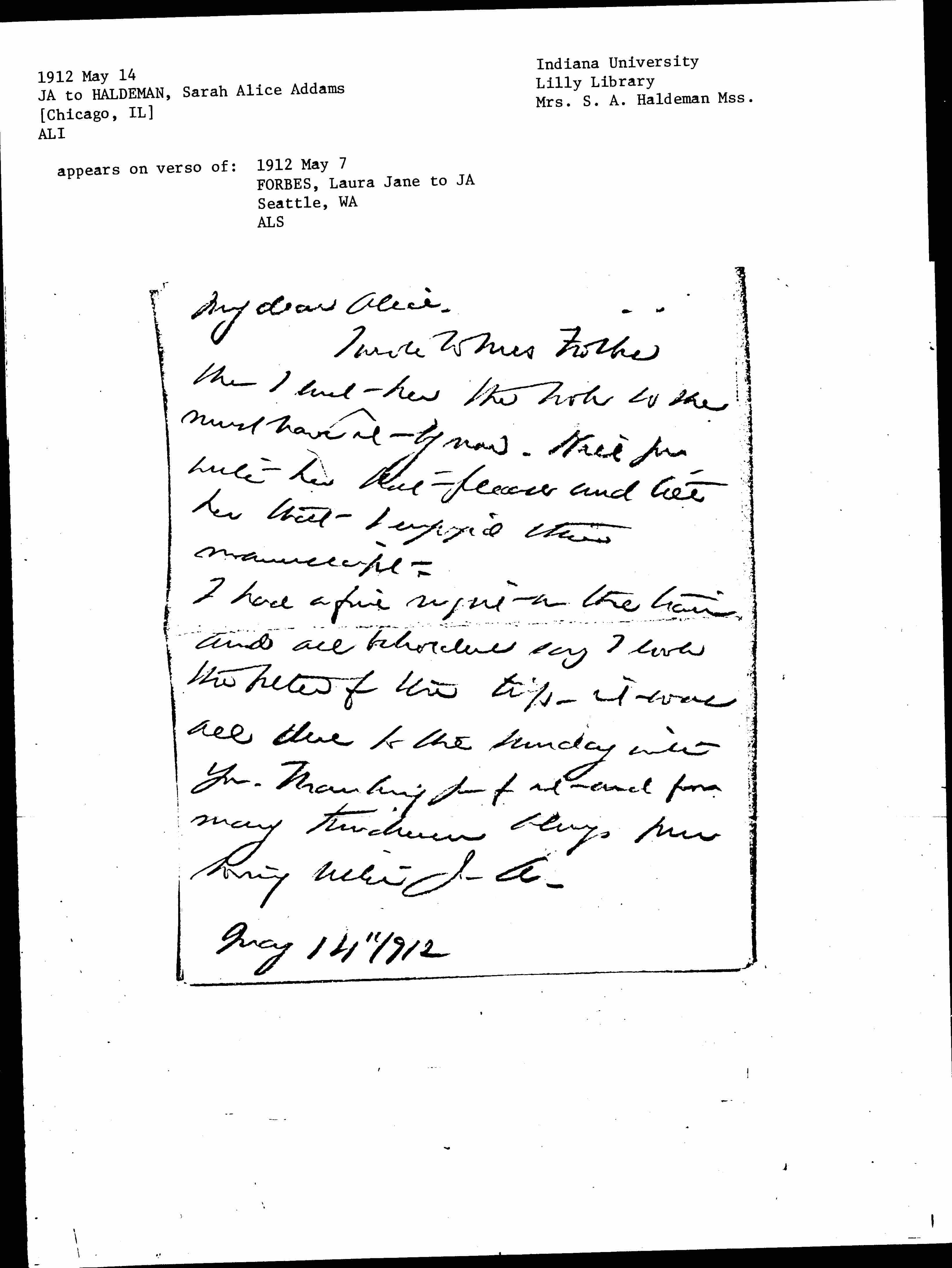 I wrote to Mrs Forbes [that] I sent her the book so she must have it by now. Will you write her that please and tell her that I enjoyed their manuscript.
