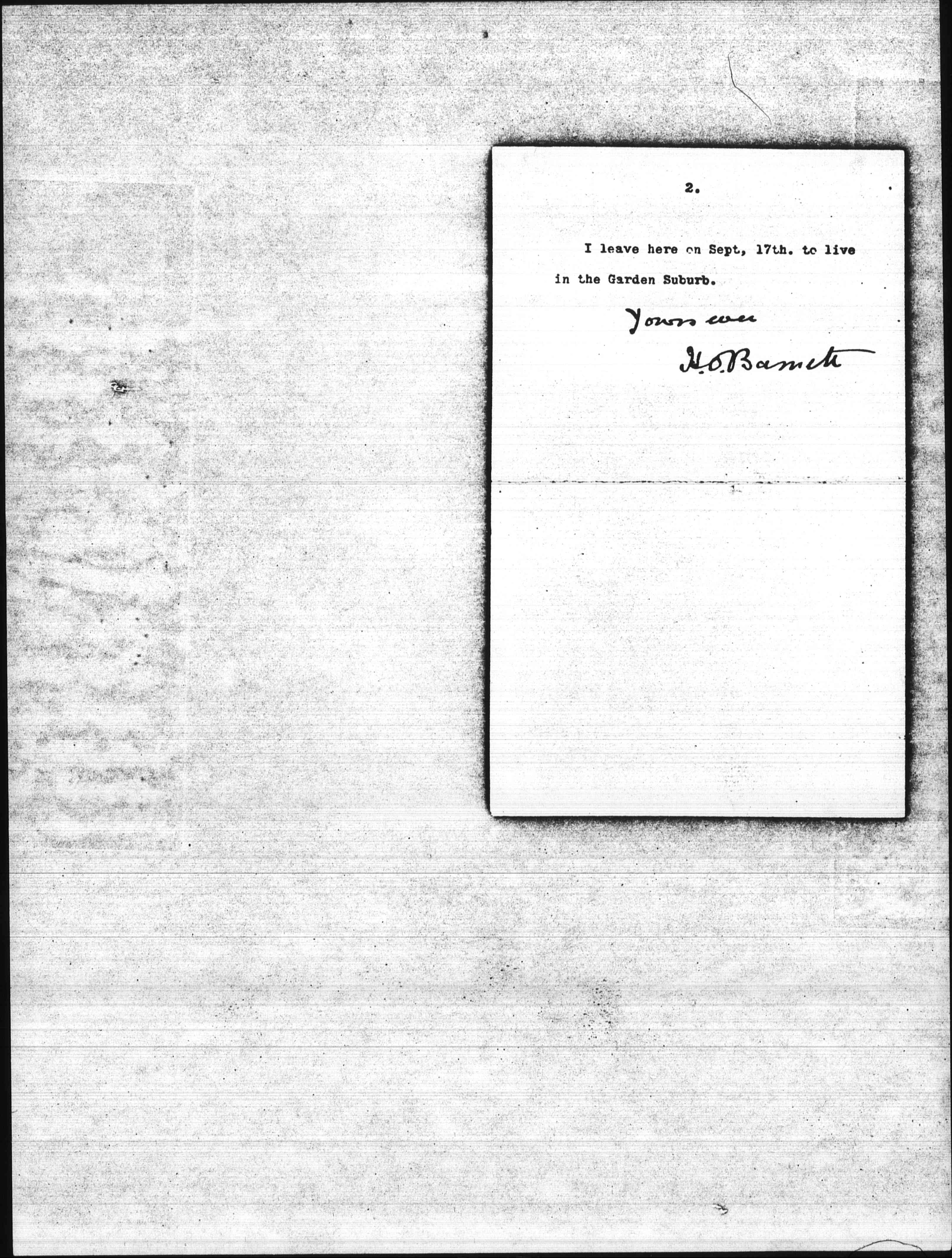 I leave here on Sept, 17th. to live in the Garden Suburb.
