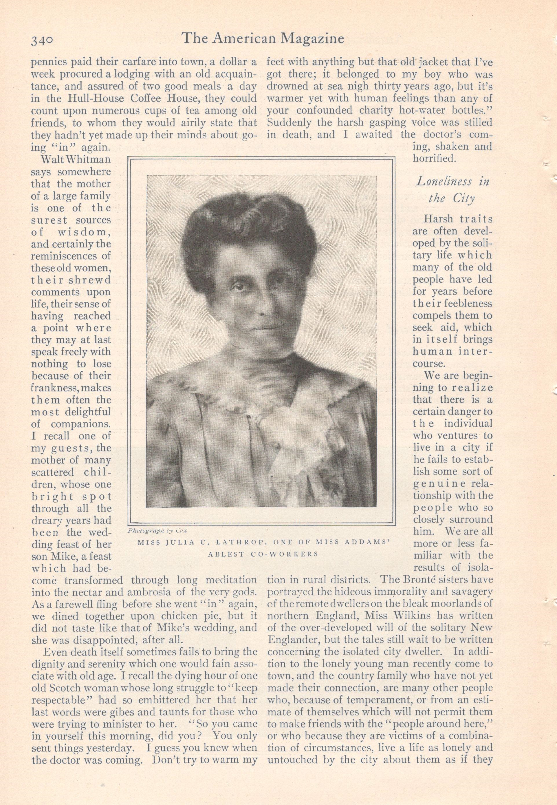 [image Photograph by Cox MISS JULIA C. LATHROP, ONE OF MISS ADDAMS' ABLEST CO-WORKERS]