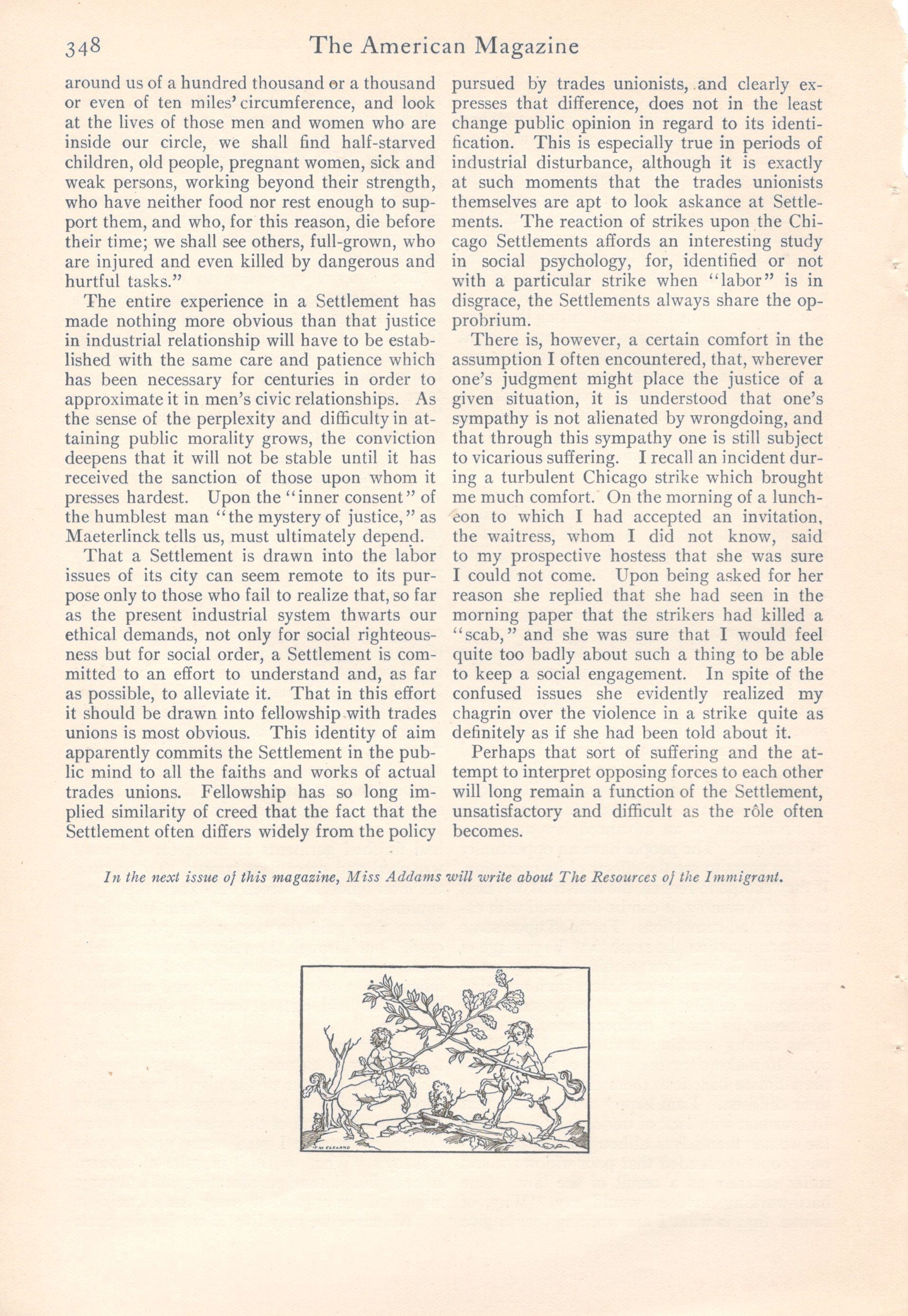 In the next issue of this magazine, Miss Addams, will write about The Resources of the Immigrant.