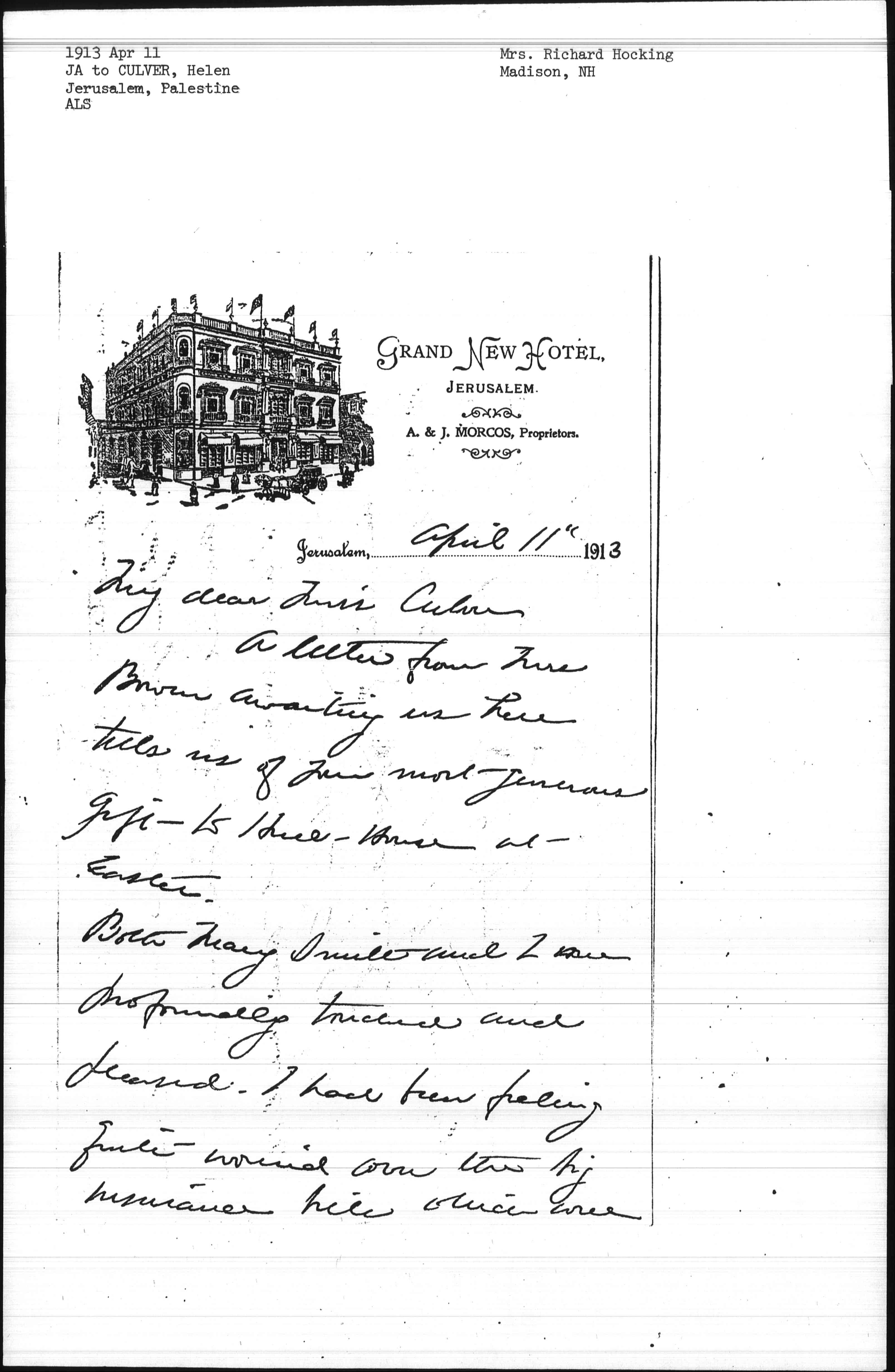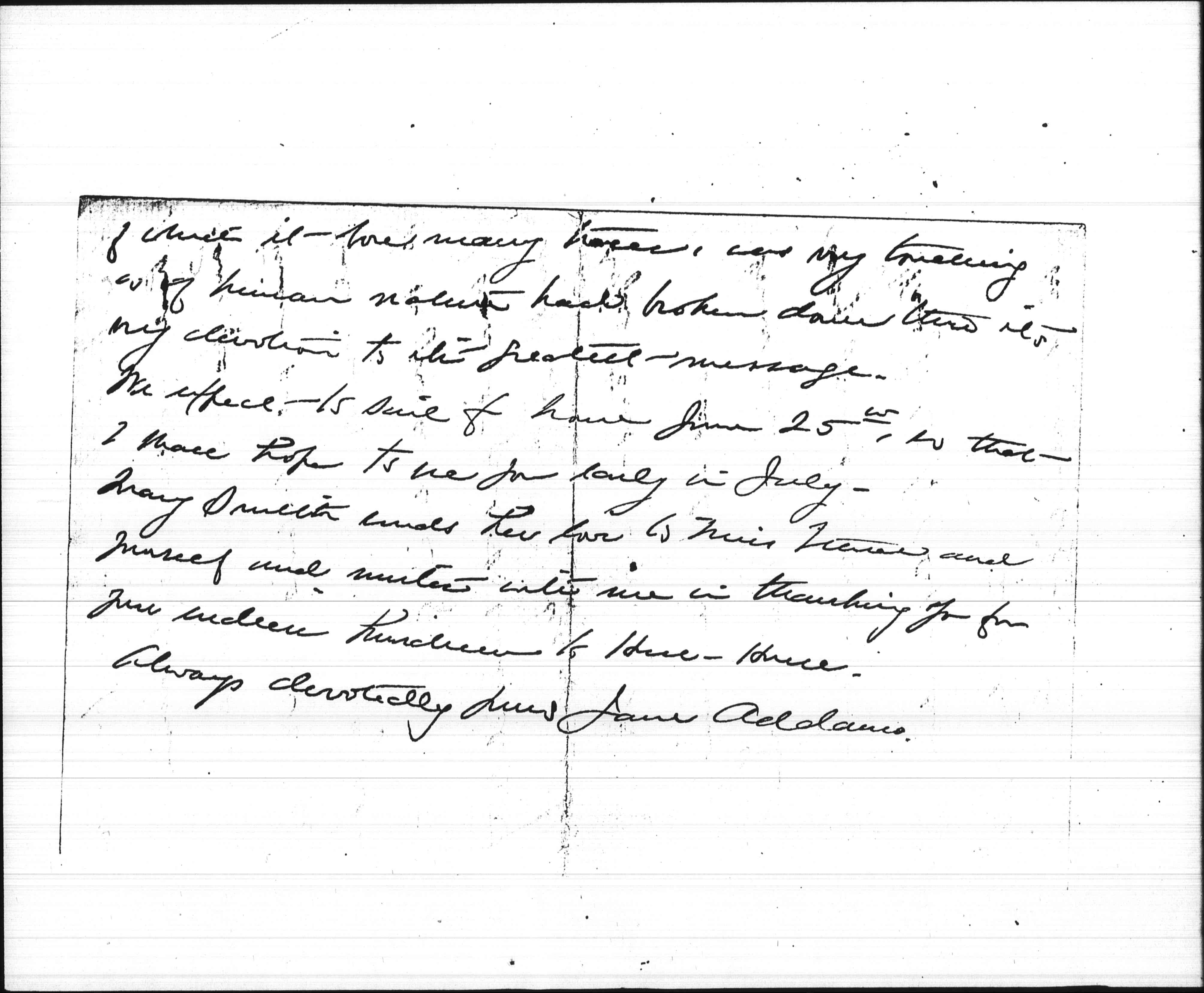 A letter from Mrs Bowen awaiting us here tells us of your most generous gift to Hull-House at Easter.