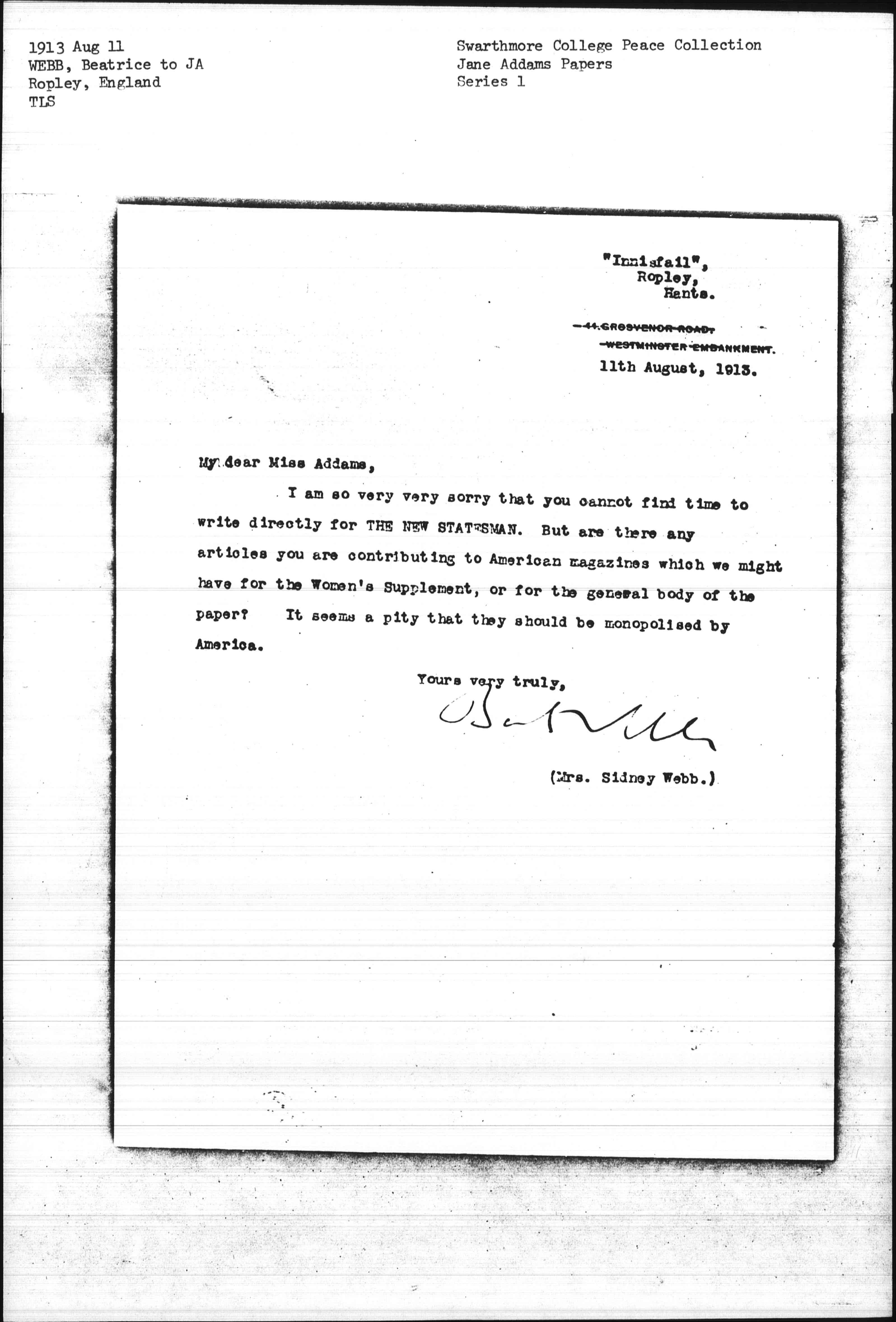 I am so very very sorry that you cannot find time to write directly for THE NEW STATESMAN. But are there any articles you are contributing to American magazines which we might have for the Women's Supplement, or for the general body of the paper? It seems a pity that they should be monopolized by America.