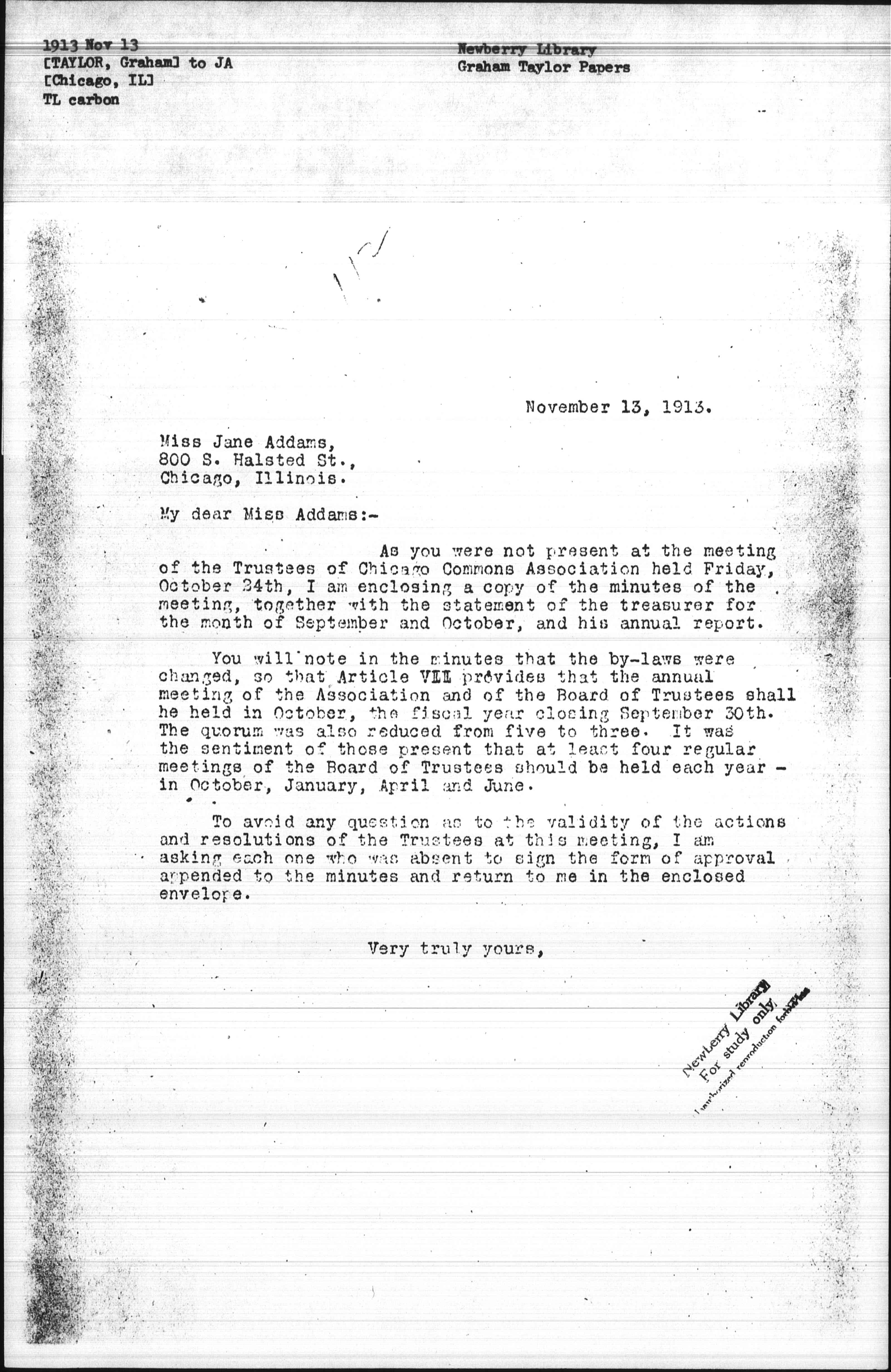 As you were not present at the meeting of the Trustees of Chicago Commons Association held Friday, October 24th, I am enclosing a copy of the minutes of the meeting, together with the statement of the treasurer for the month of September and October, and his annual report.