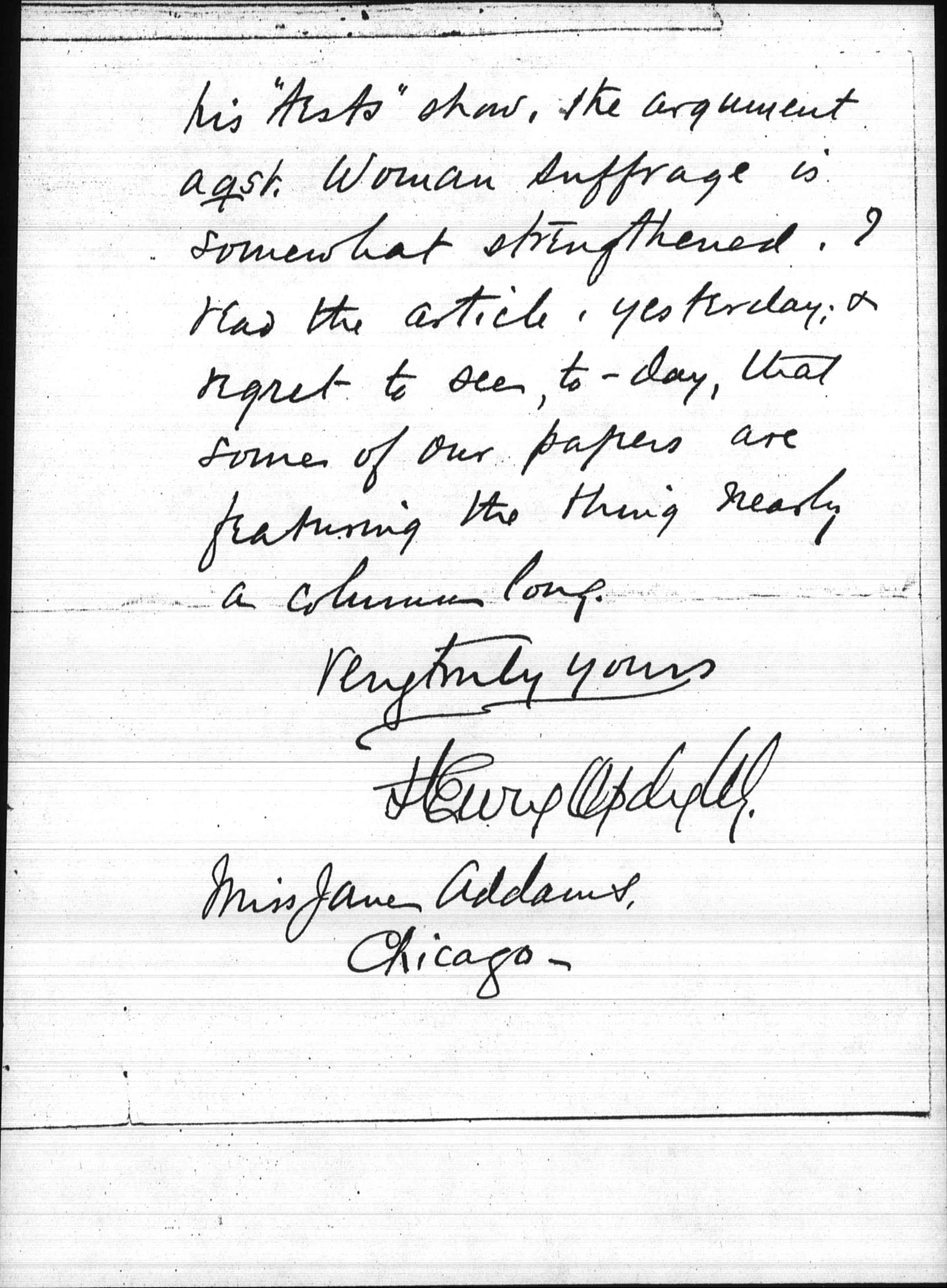 Dear Miss [Addams] --