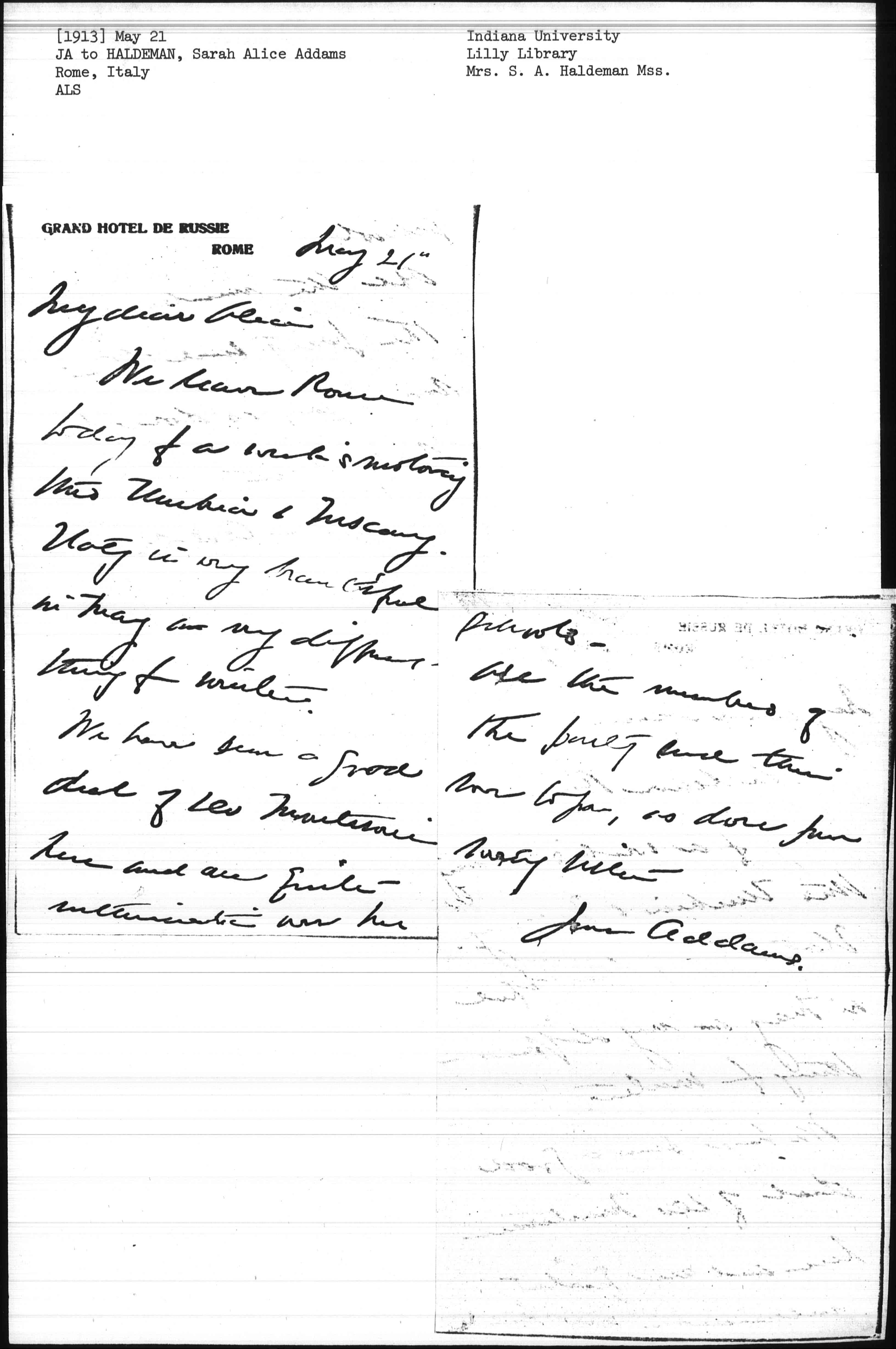 We leave Rome today for a week's motoring [through] Umbria & Tuscany. Italy is very beautiful in May a very different thing from winter.