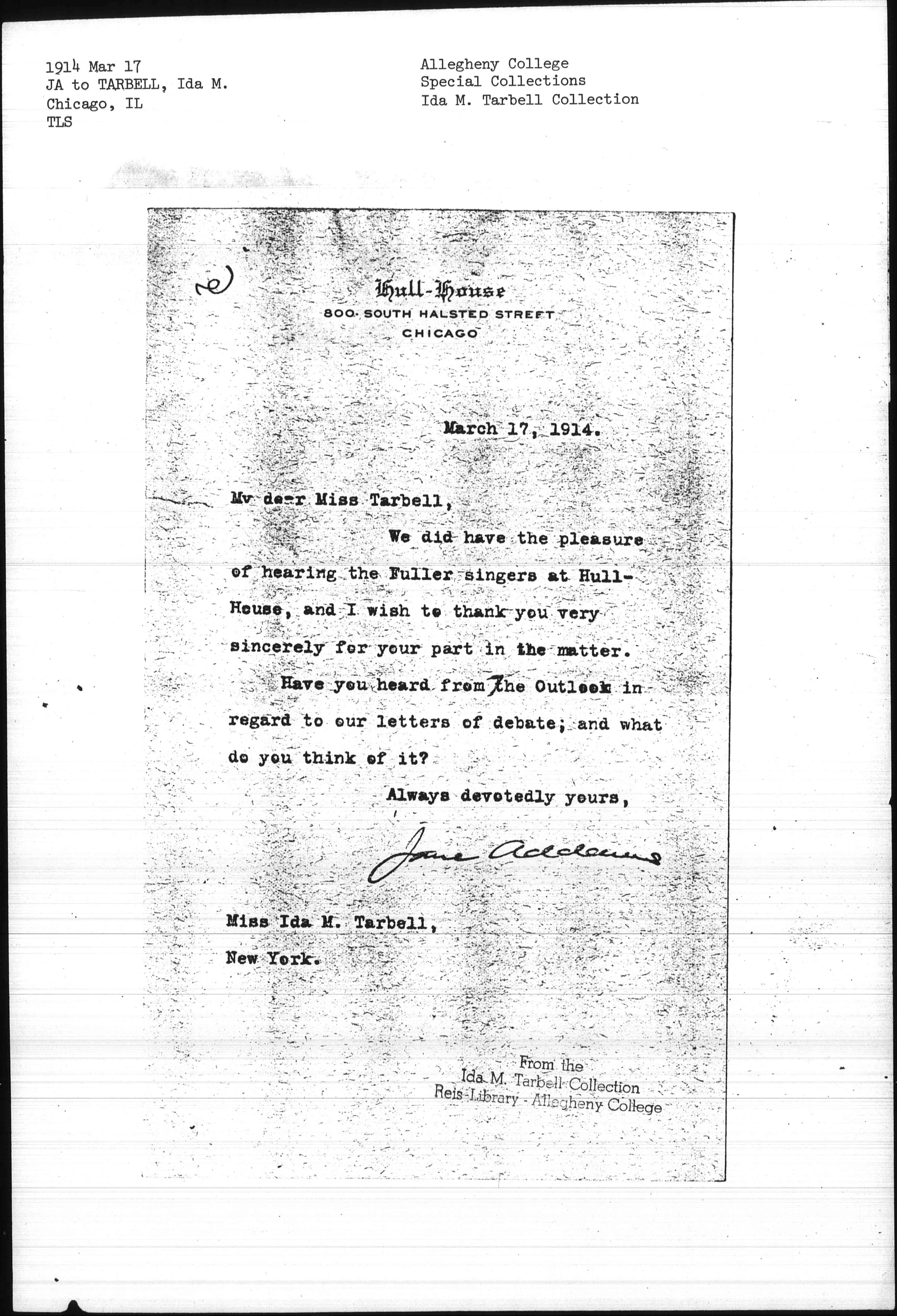 Jane Addams [signed]