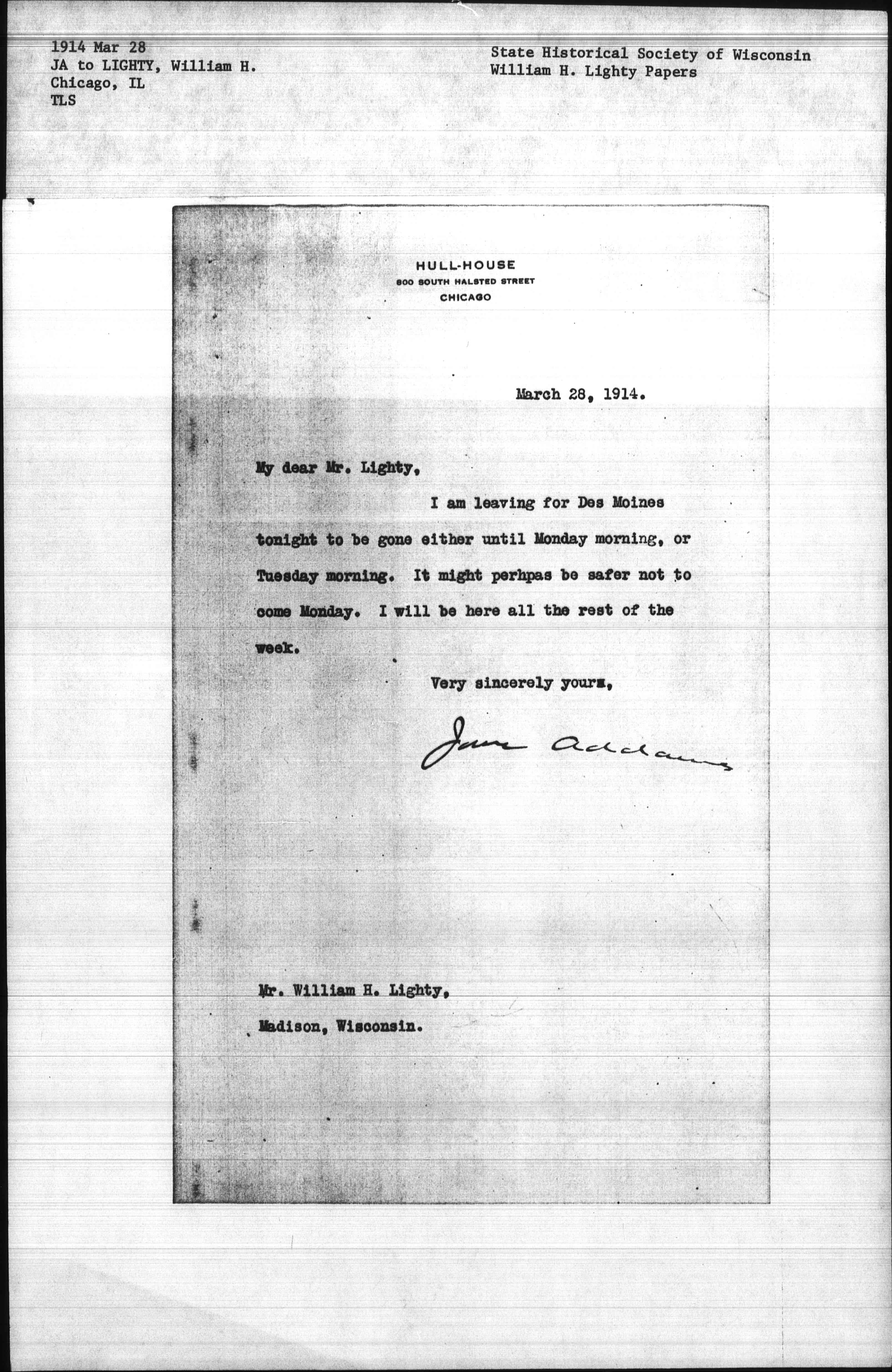 Jane Addams [signed]
