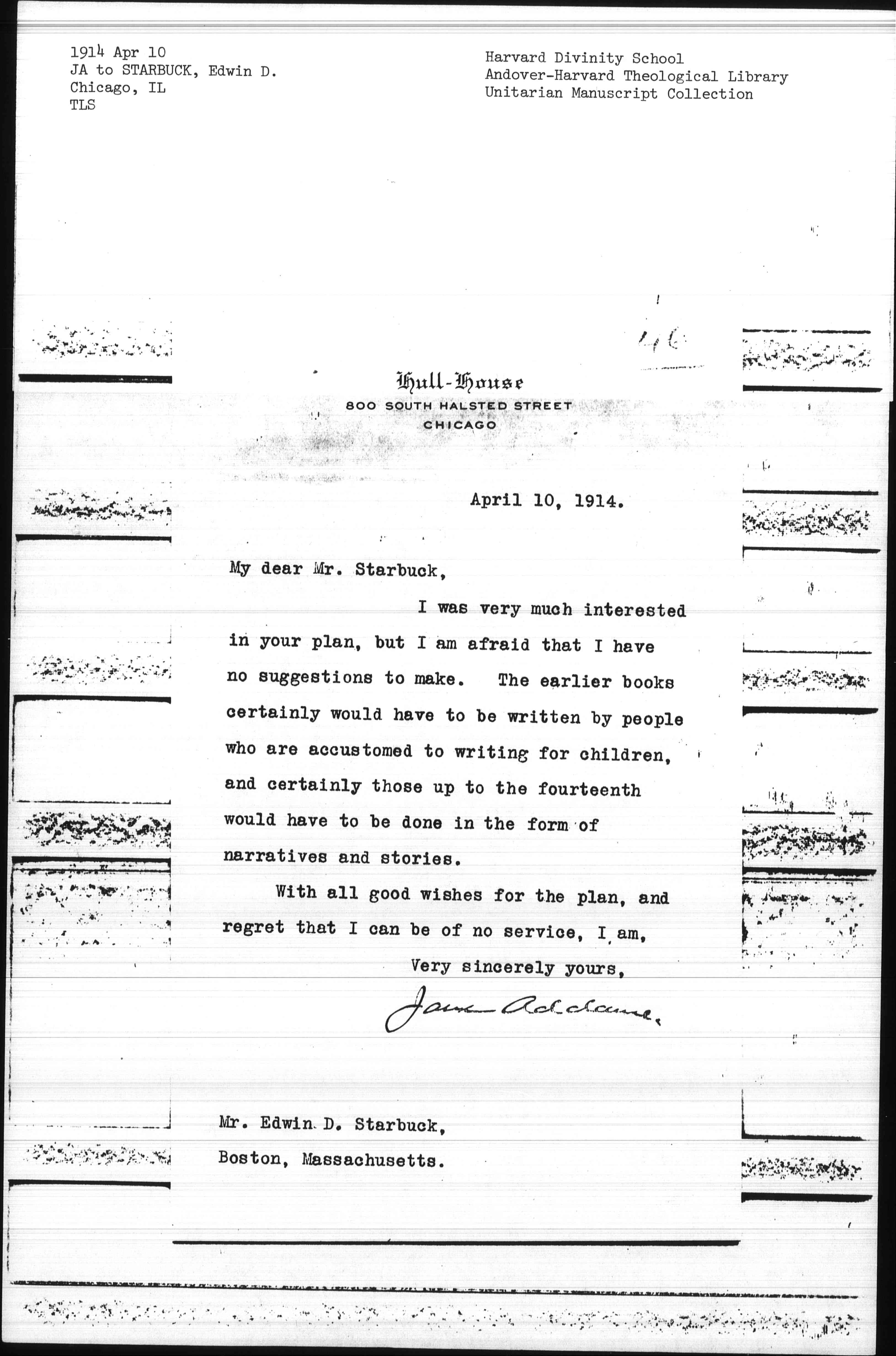 Jane Addams. [signed]
