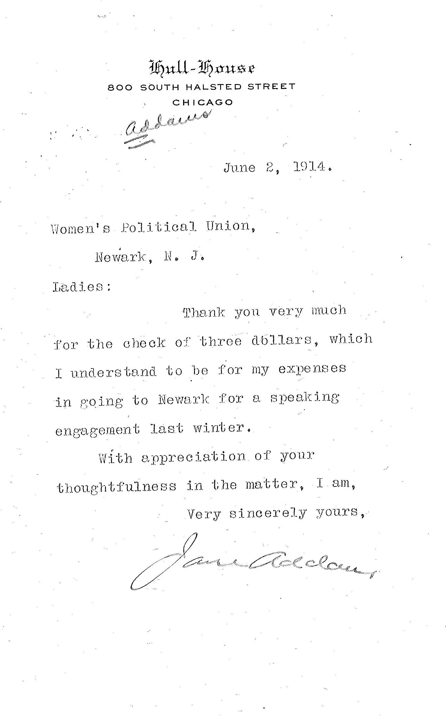 Thank you very much for the check of three dollars, which I understand to be for my expenses in going to Newark for a speaking engagement last winter.