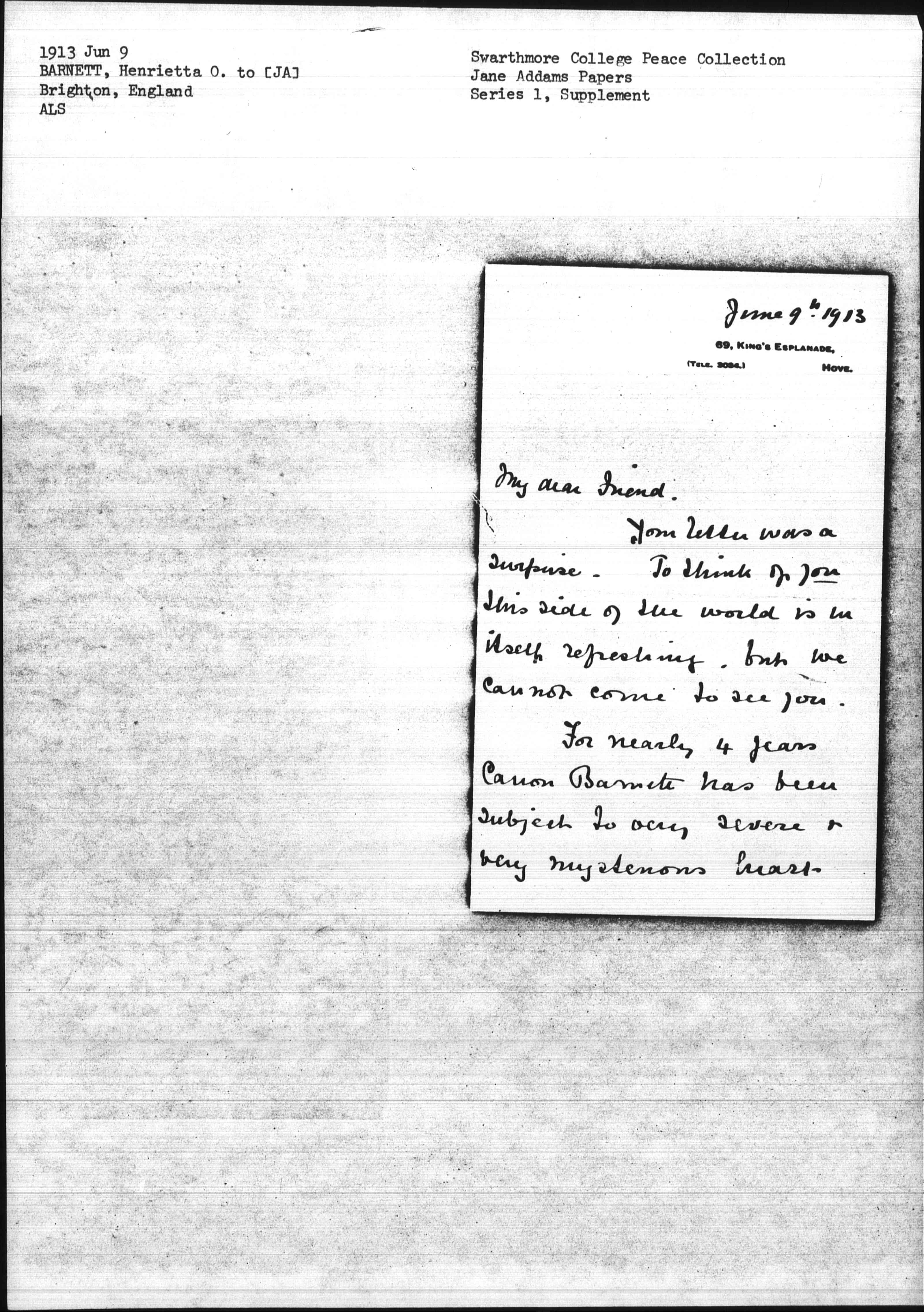 For nearly 4 years Canon Barnett has been subject to very severe & very mysterious heart [page 2] attacks, but he has done his Abbey work & seen [to] inspired many men in quiet talks.