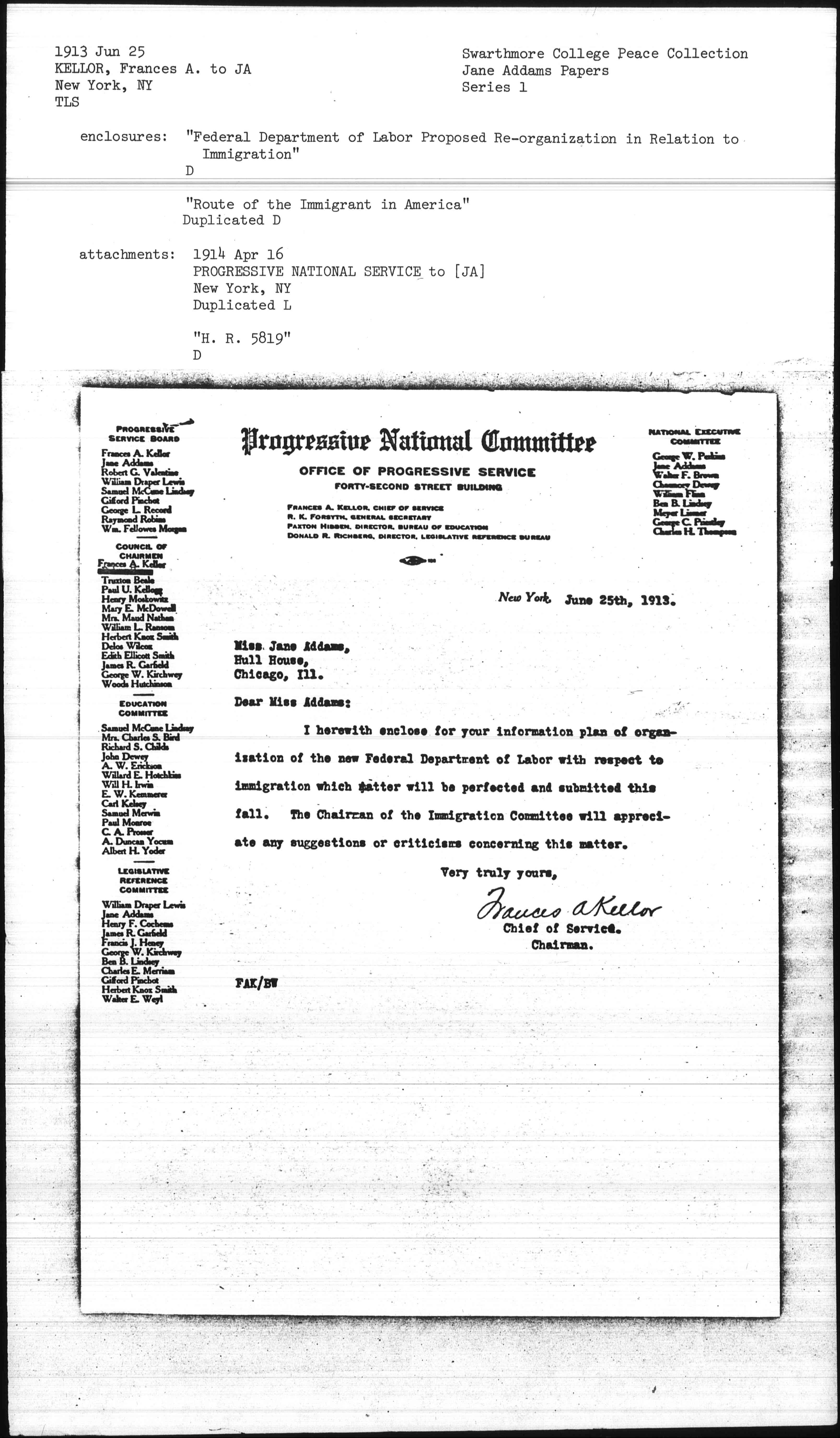 Frances A Kellor [signed]