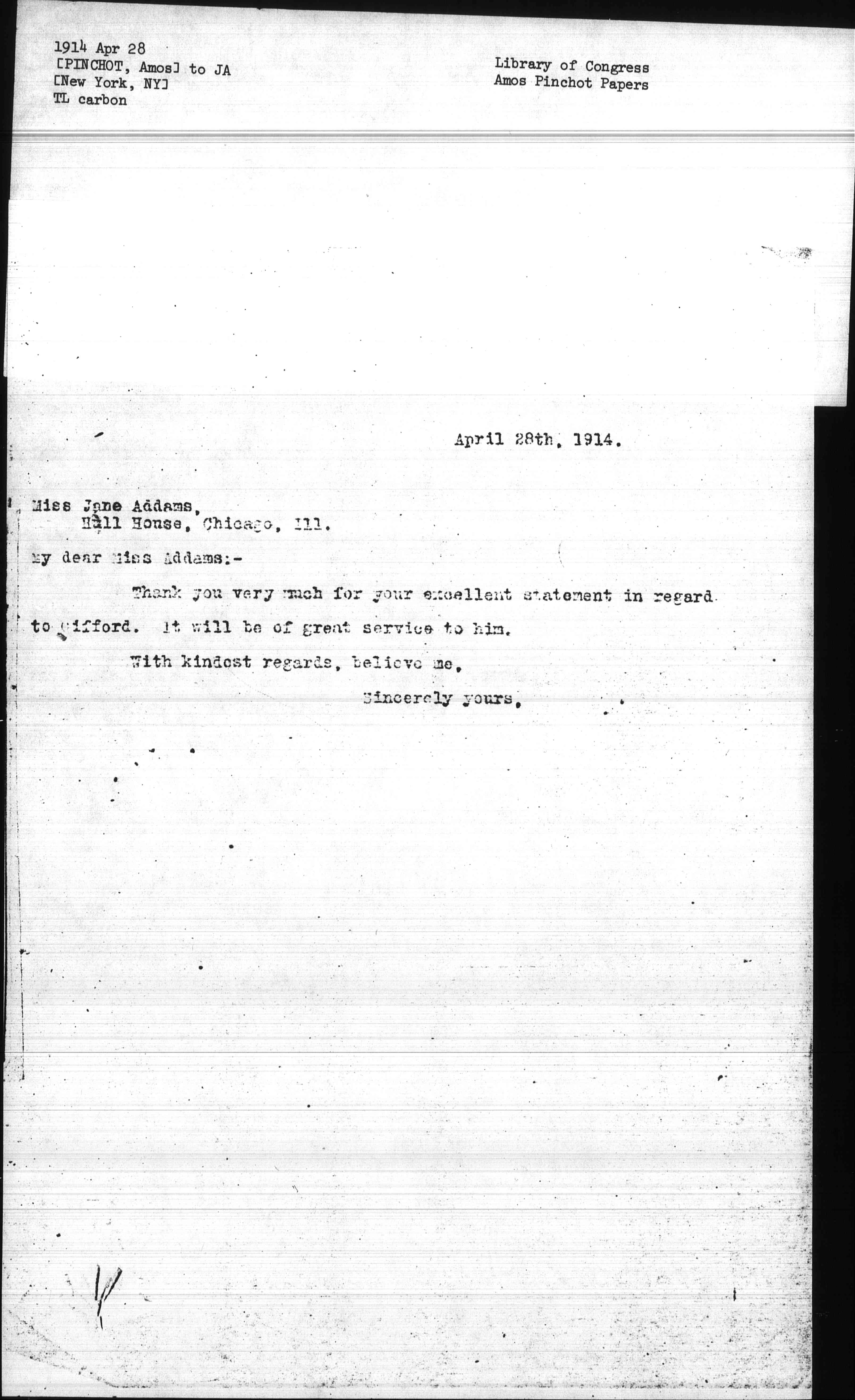 My dear Miss Addams: --