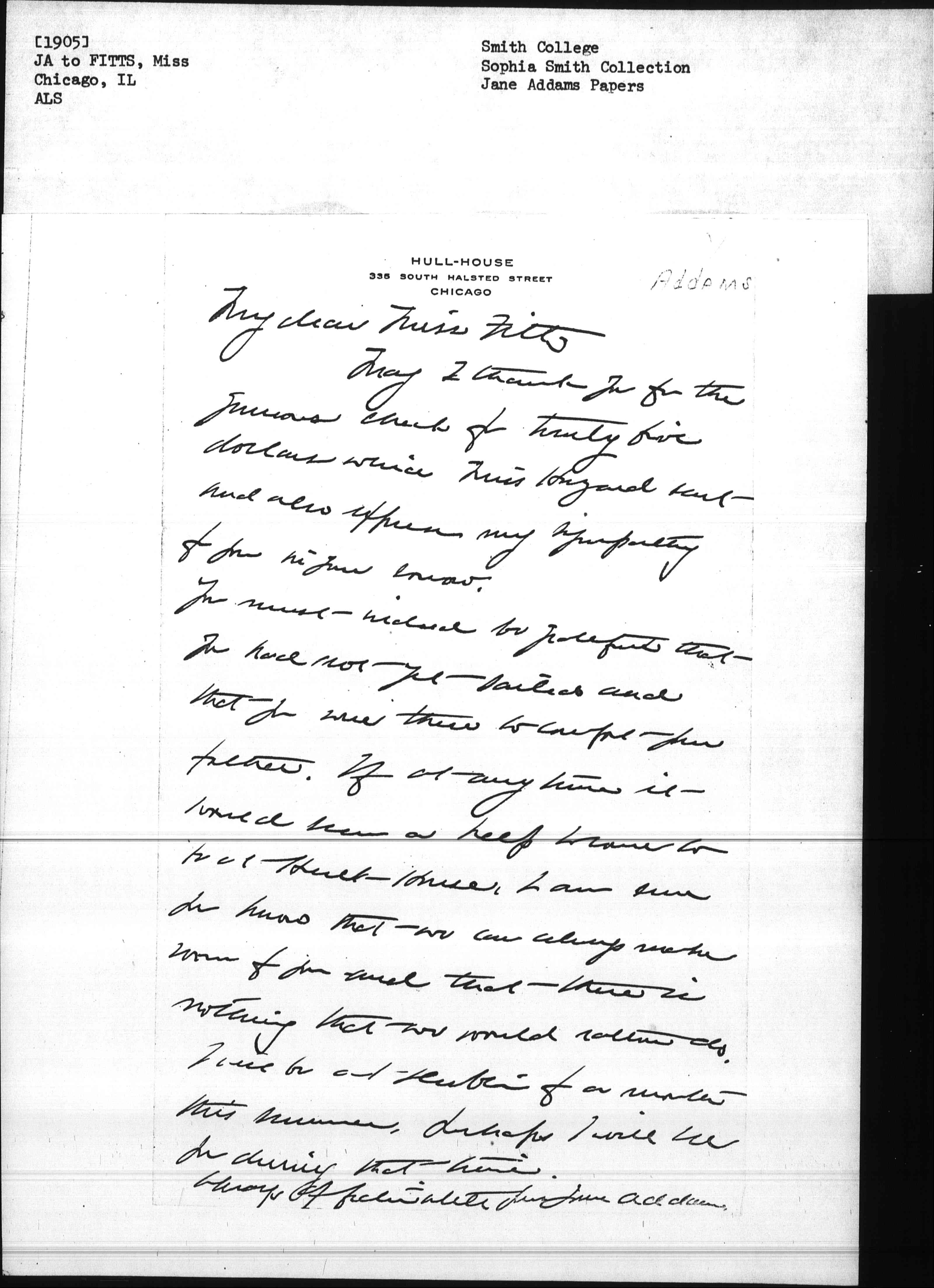 Always affectionately yours, Jane Addams