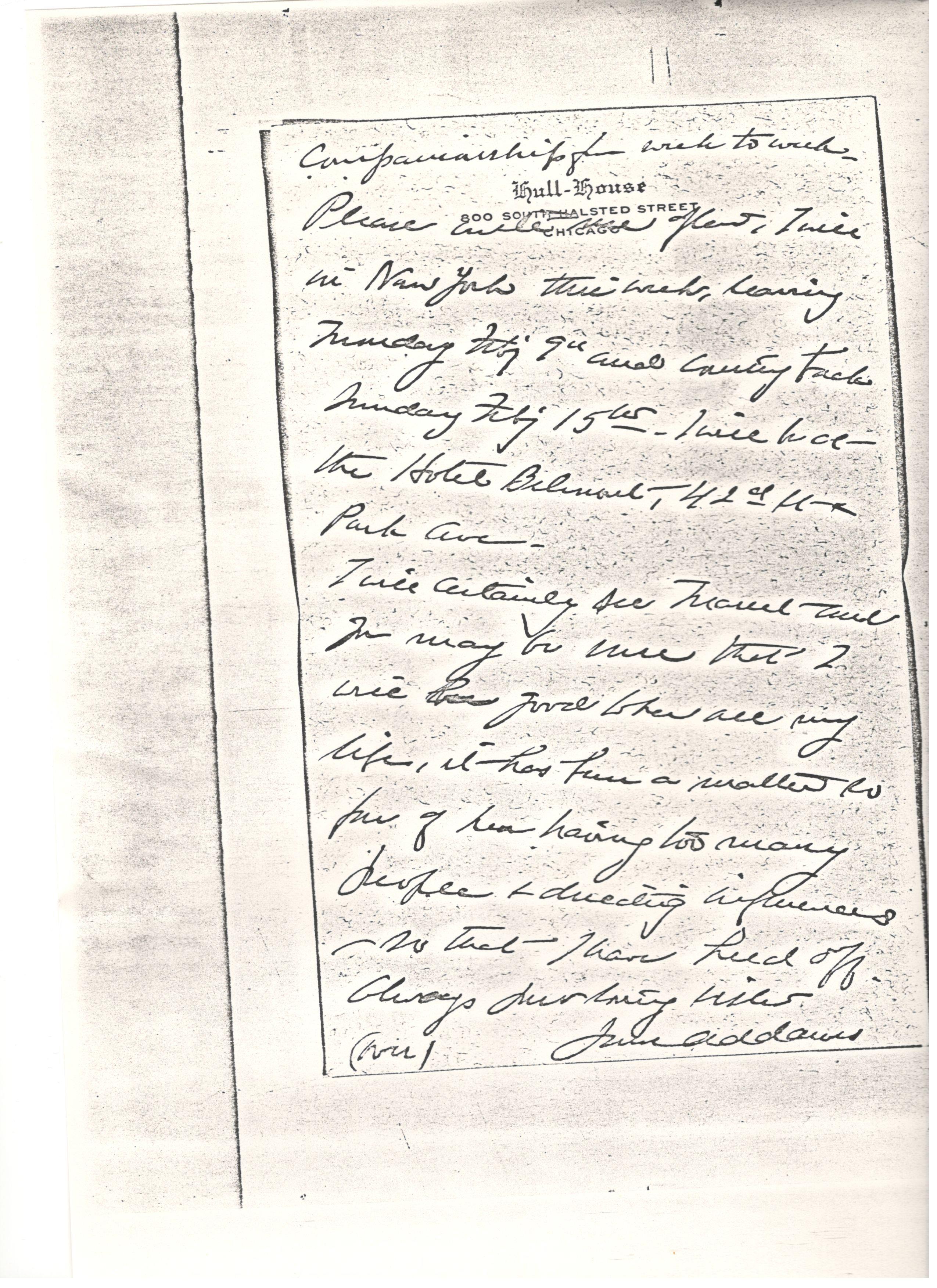 I am sending you a set of prints from all of the Hull-House [plates] which we have just had made.