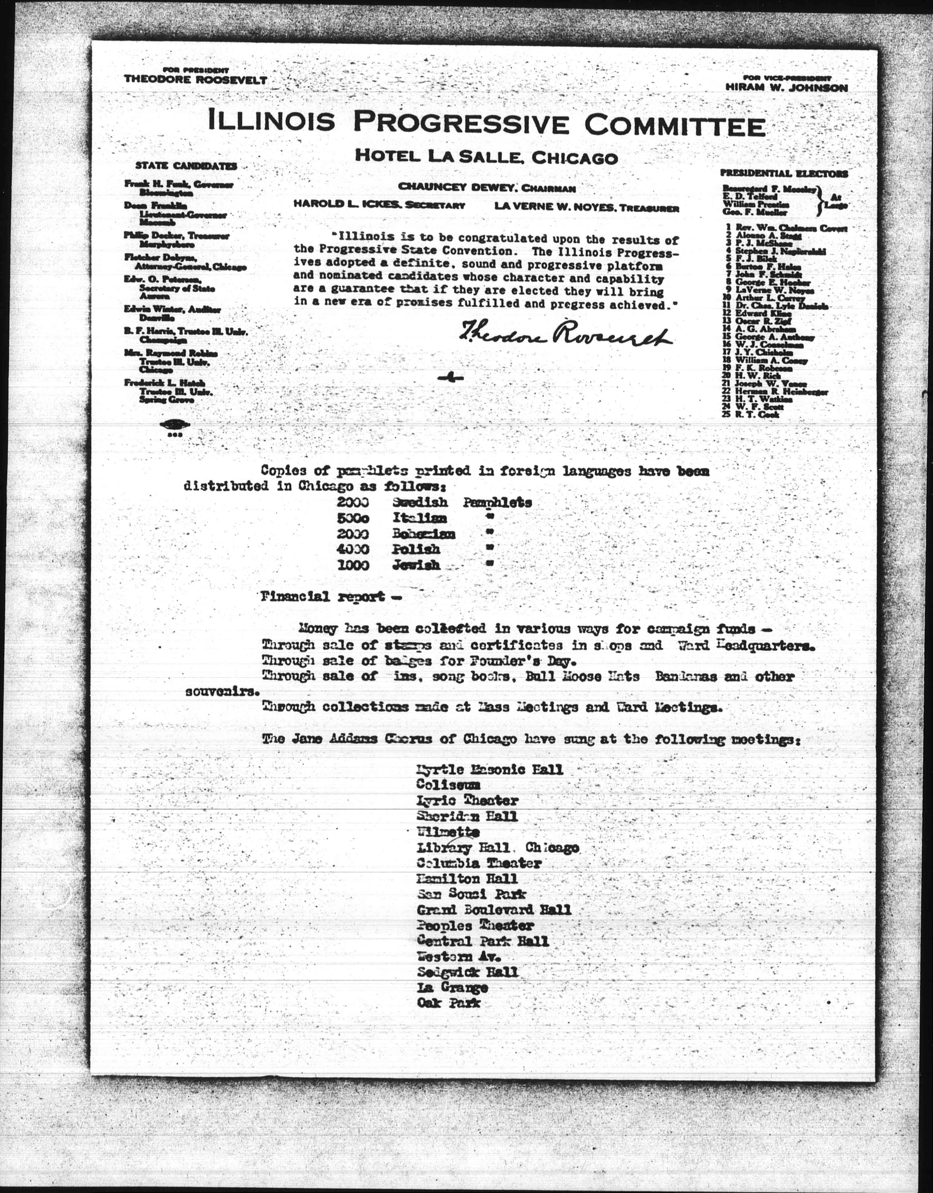 The Jane Addams Chorus of Chicago have sung at the following meetings: