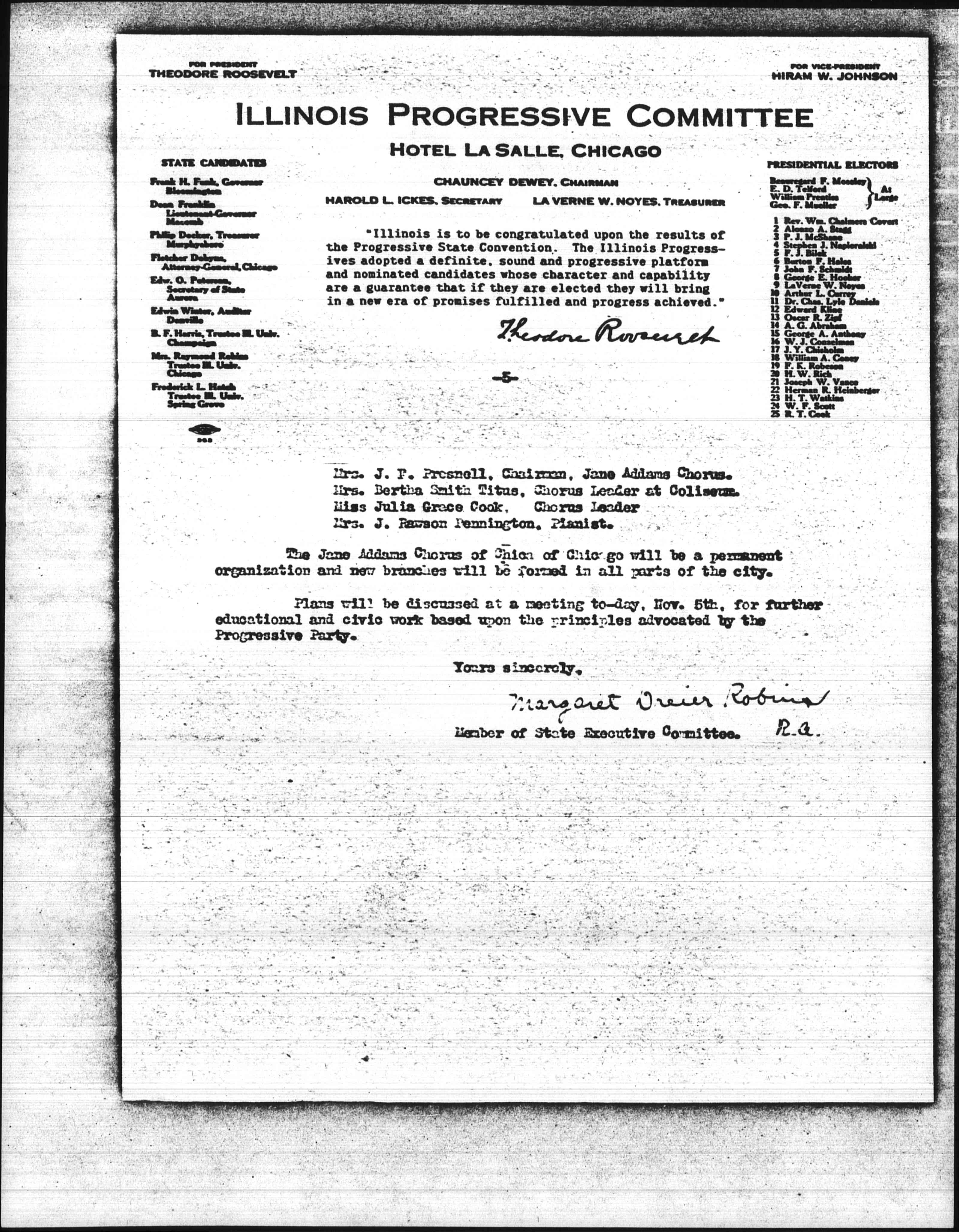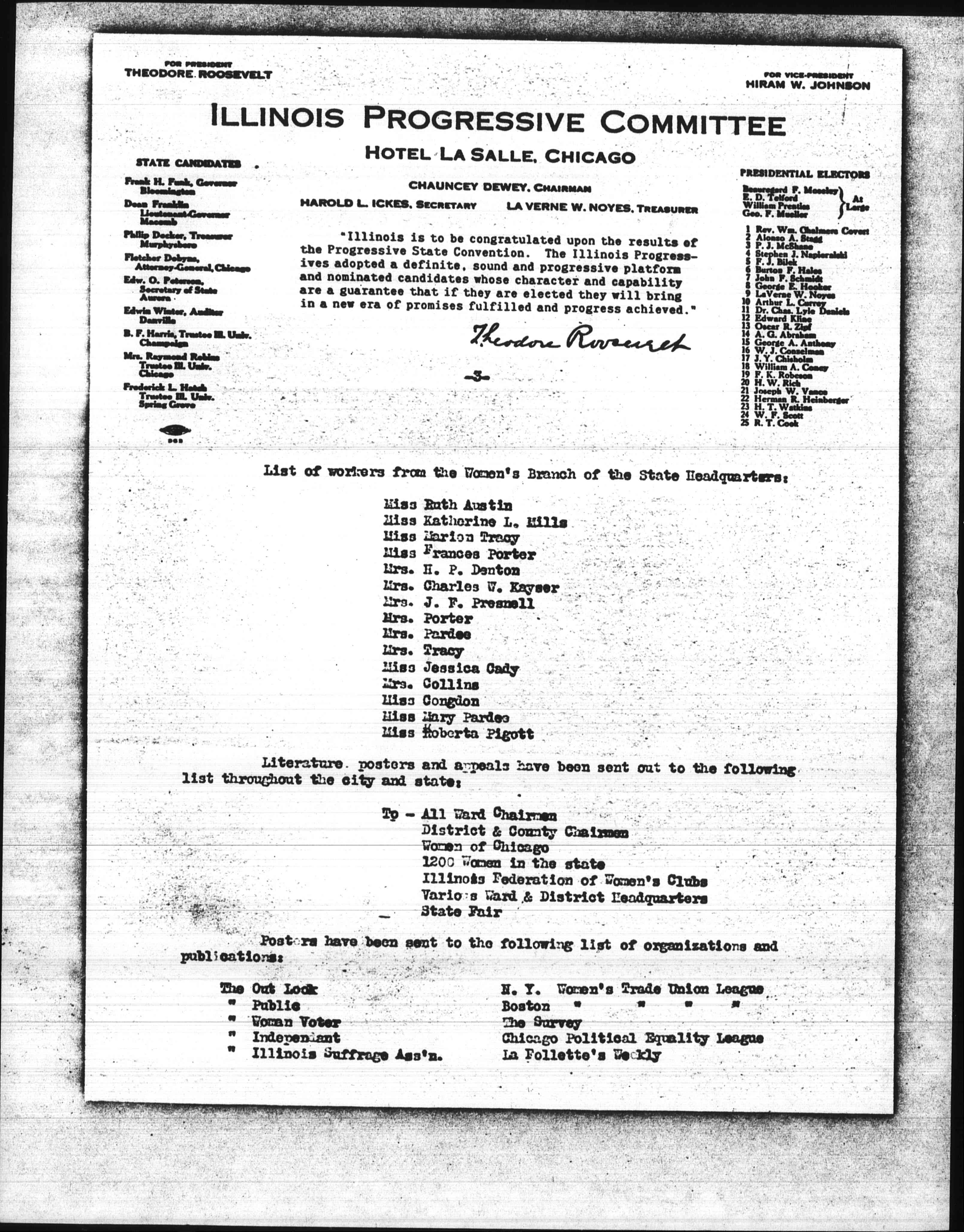 A partial list of women who have given their services as speakers for the Progressive Cause in the state of Illinois are as follows: