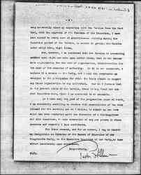 For these reasons, and for no others, I beg to tender my resignation as Director of the Bureau of Education of the Progressive Party, to the Executive Committee of the Party, to take effect immediately upon acceptance.