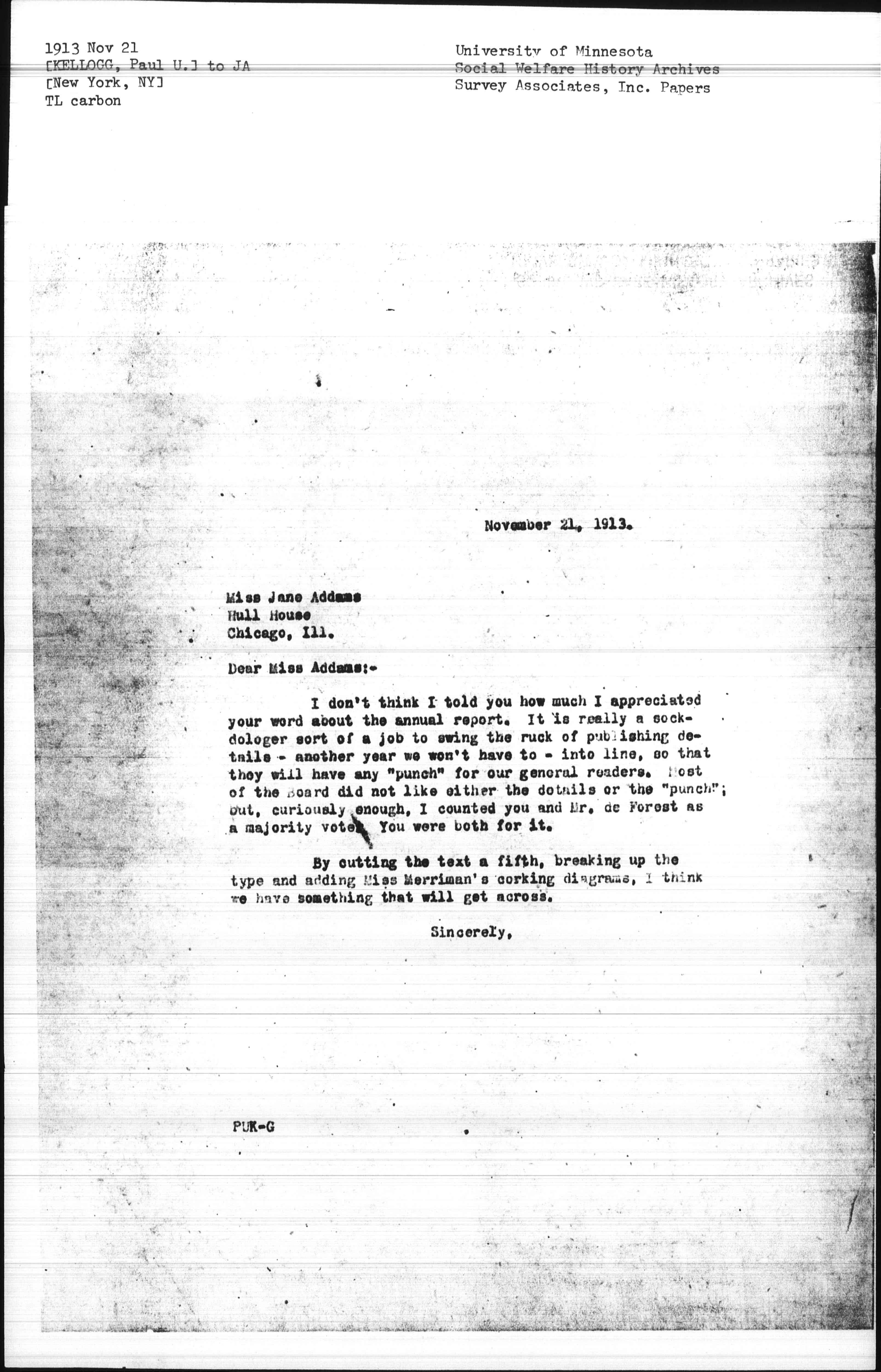 I don't think I told you how much I appreciated your word about the annual report. It is really a sockdologer sort of a job to swing the ruck of publishing details -- another year we won't have to -- into line, so that they will have any "punch" for our general readers. Most of the Board did not like either the details or the "punch"; but, curiously enough, I counted you and Mr. de Forest as a majority vote. You were both for it.