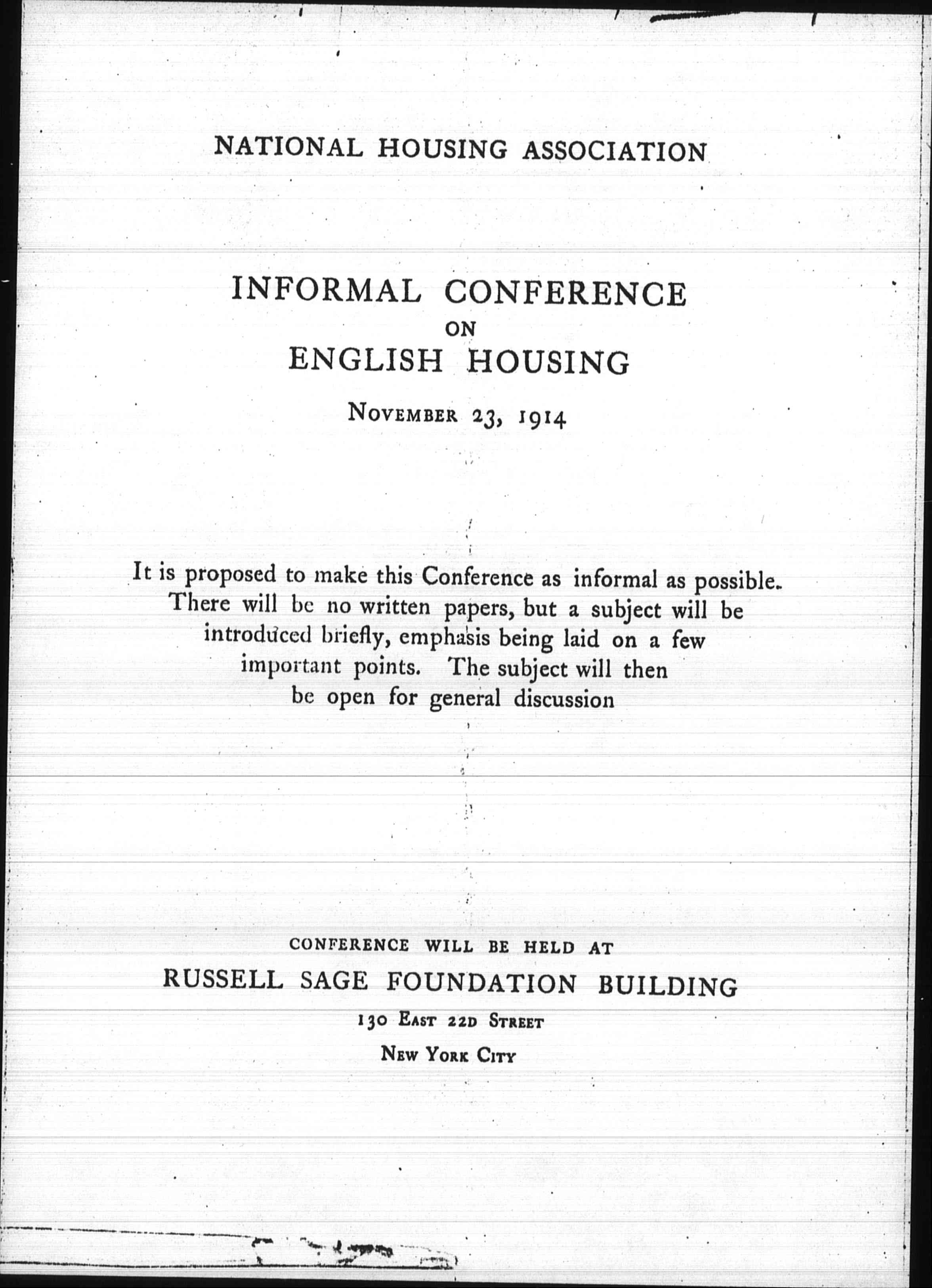 It is proposed to make this Conference as informal as possible. There will be no written papers, but a subject will be introduced briefly, emphasis being laid on a few important points. The subject will then be open for general discussion.