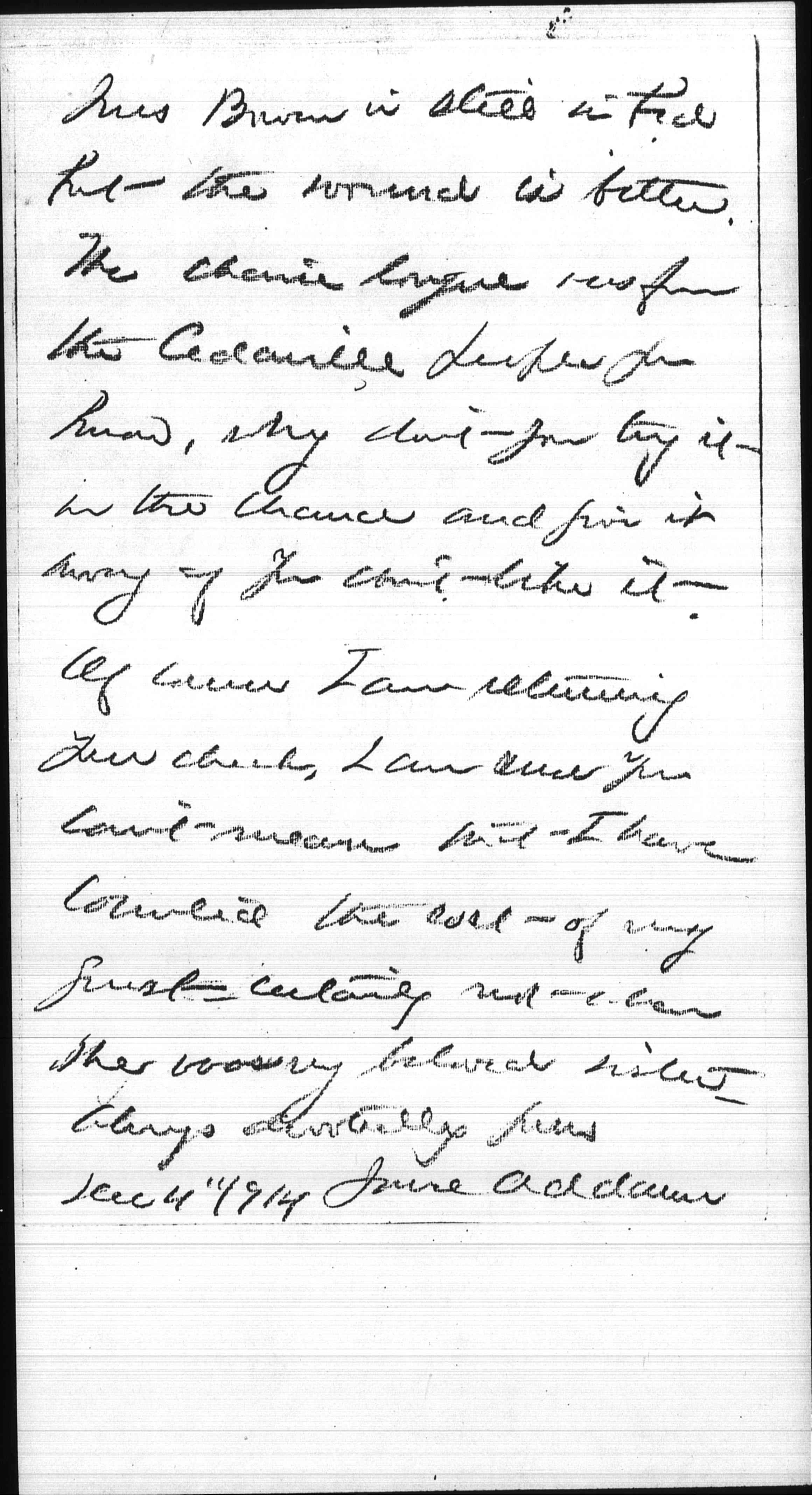 Dear Alice, let us be gentle in our [judgment] of each other, and try next time you come to get back into a better relation again. I am sure we can if we try. We were probably both nervous and certainly you are ill and I wouldn't hurt you for the world. [page 4] Mrs Bowen is still in bed but the wound is better. The chaise lounge was from the Cedarville people you know, why don't you try it on the chance and give it away if you don't like it.