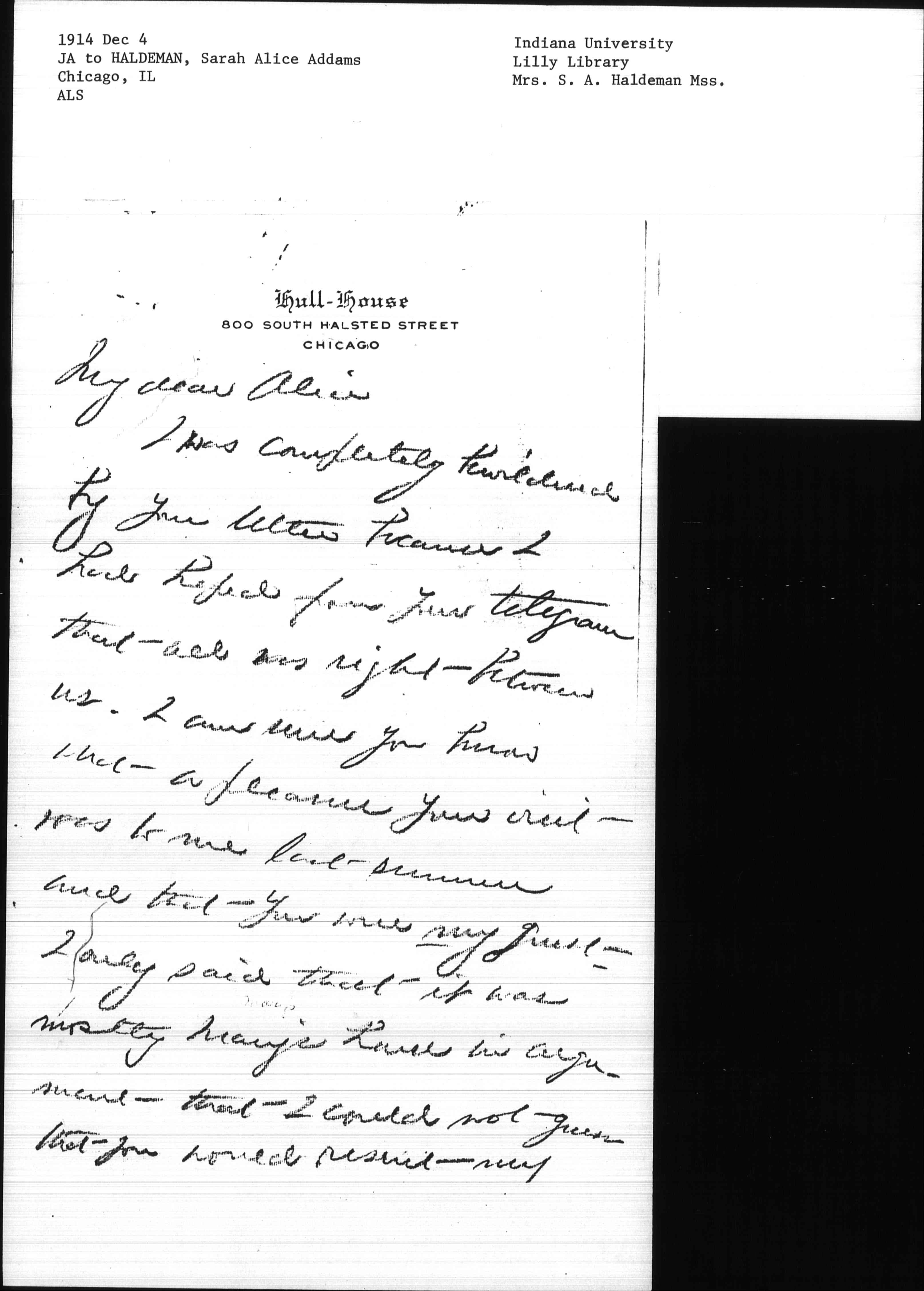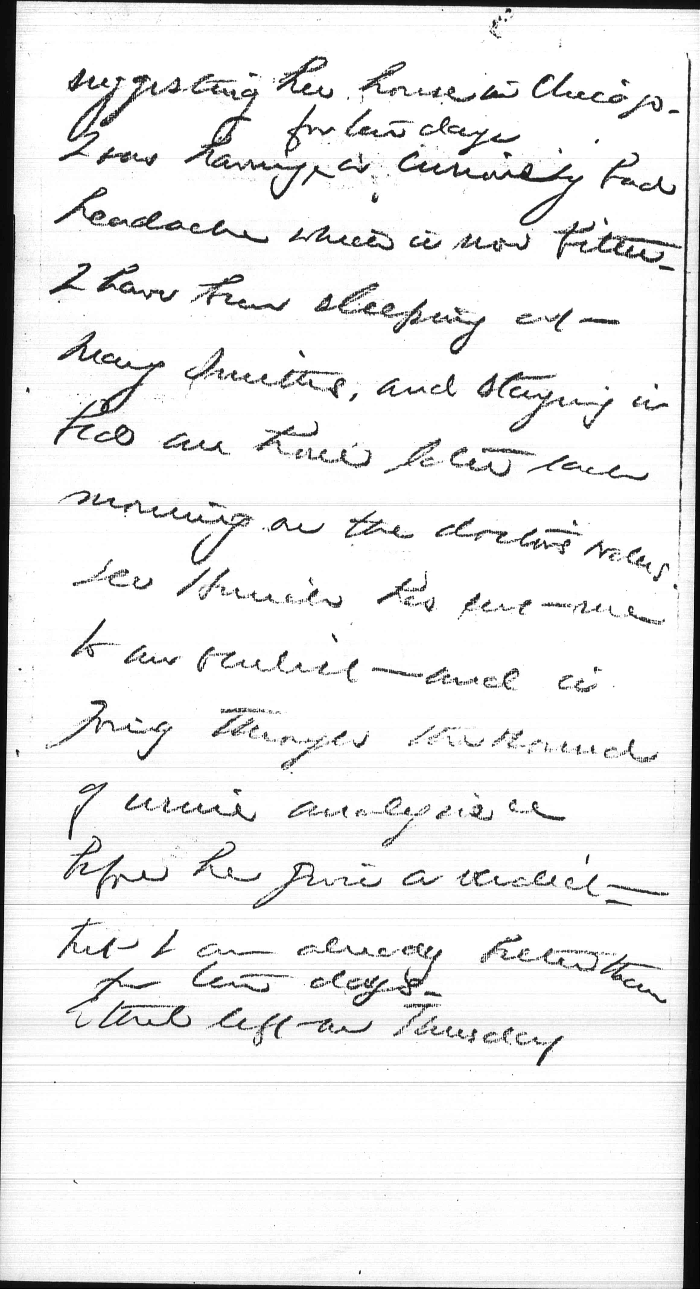 I was completely bewildered by your letter because I had hoped from your telegram that all was right between us. I am sure you know what a pleasure your visit was to me last summer and that you were my guest. I only said that it was mostly Mary's house in argument that I could not guess that you would resent my [page 2] suggesting her house in Chicago. I was having ↑for ten days↓ a curiously bad headache which is now better. I have been sleeping at Mary Smith's, and staying in bed an hour later each morning on the doctor's orders. Dr Herrick has sent me to an oculist and is going through the round of urine analysis [etc.] before he gives a verdict, but I am already better than for ten days.