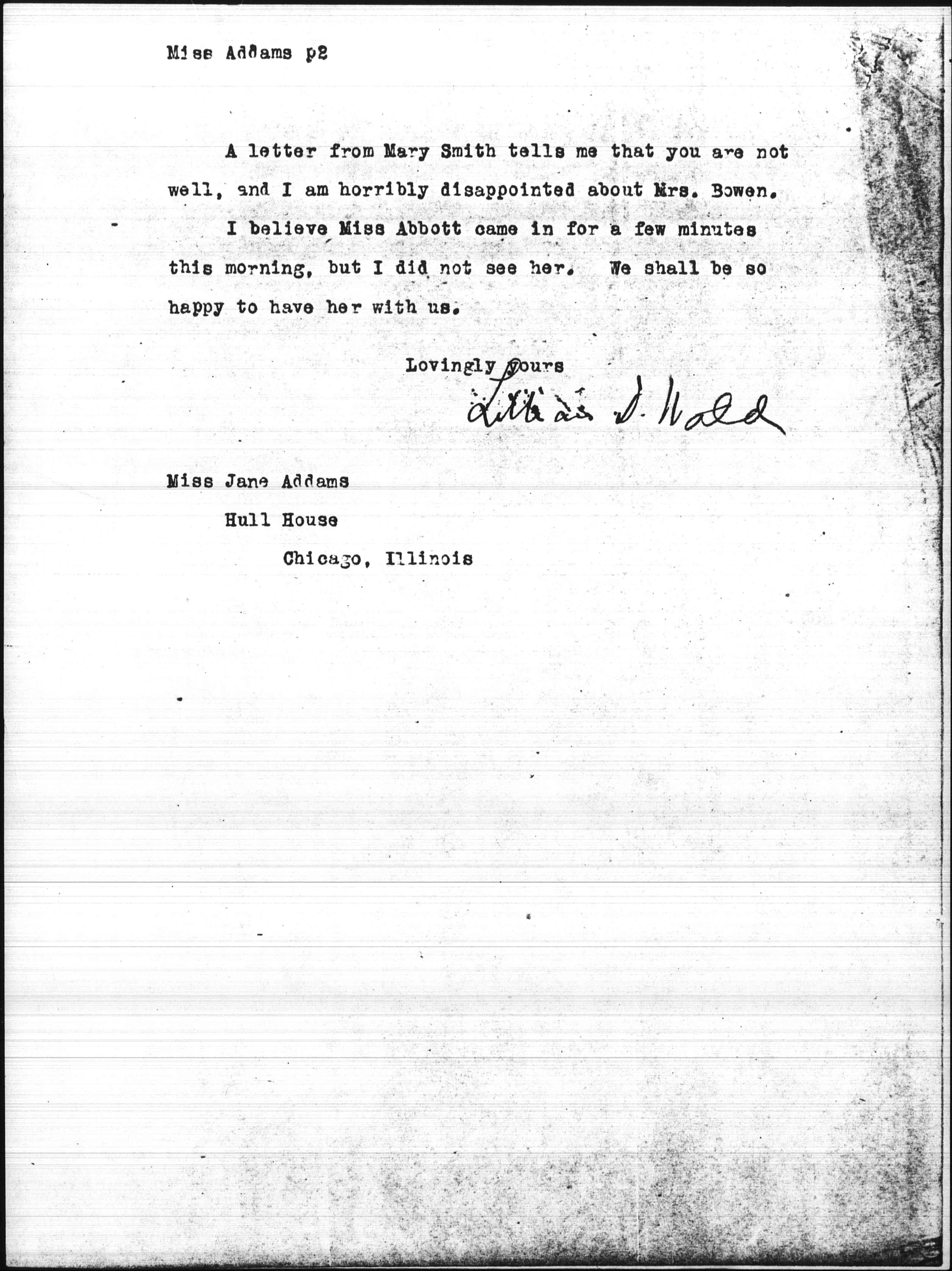 A letter from Mary Smith tells me that you are not well, and I am horribly disappointed about Mrs. Bowen.