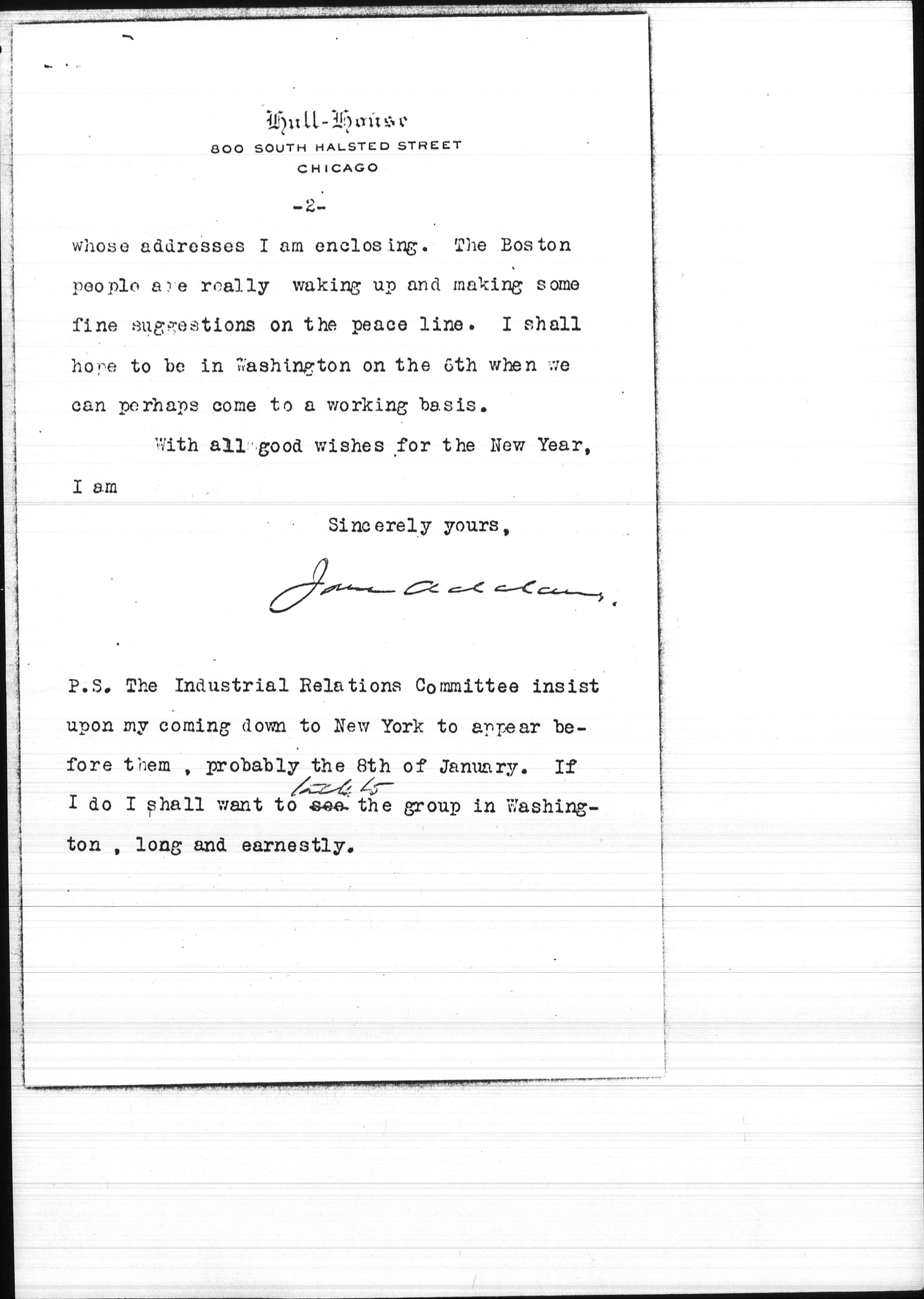 P.S. The Industrial Relations Committee insist upon my coming down to New York to appear before them, probably the 8th of January. If I do I shall want to see <talk to> the group in Washington, long and earnestly.
