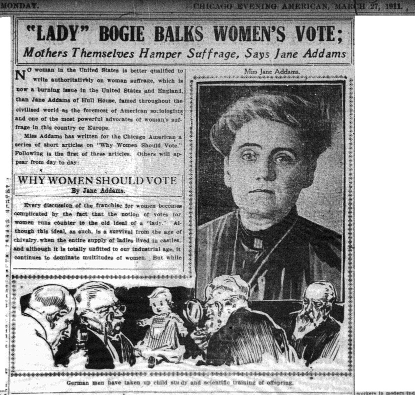 Miss Addams has written for the Chicago American a series of short articles on "Why Women Should Vote." Following is the first of these articles. Others will appear from day to day.