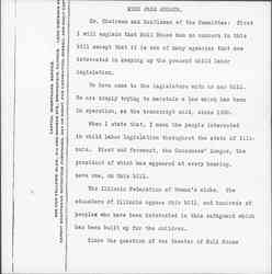 When I state that, I mean the people interested in child labor legislation throughout the state of Illinois. First and foremost, the Consumer's League, the president of which has appeared at every hearing, save one, on this bill.