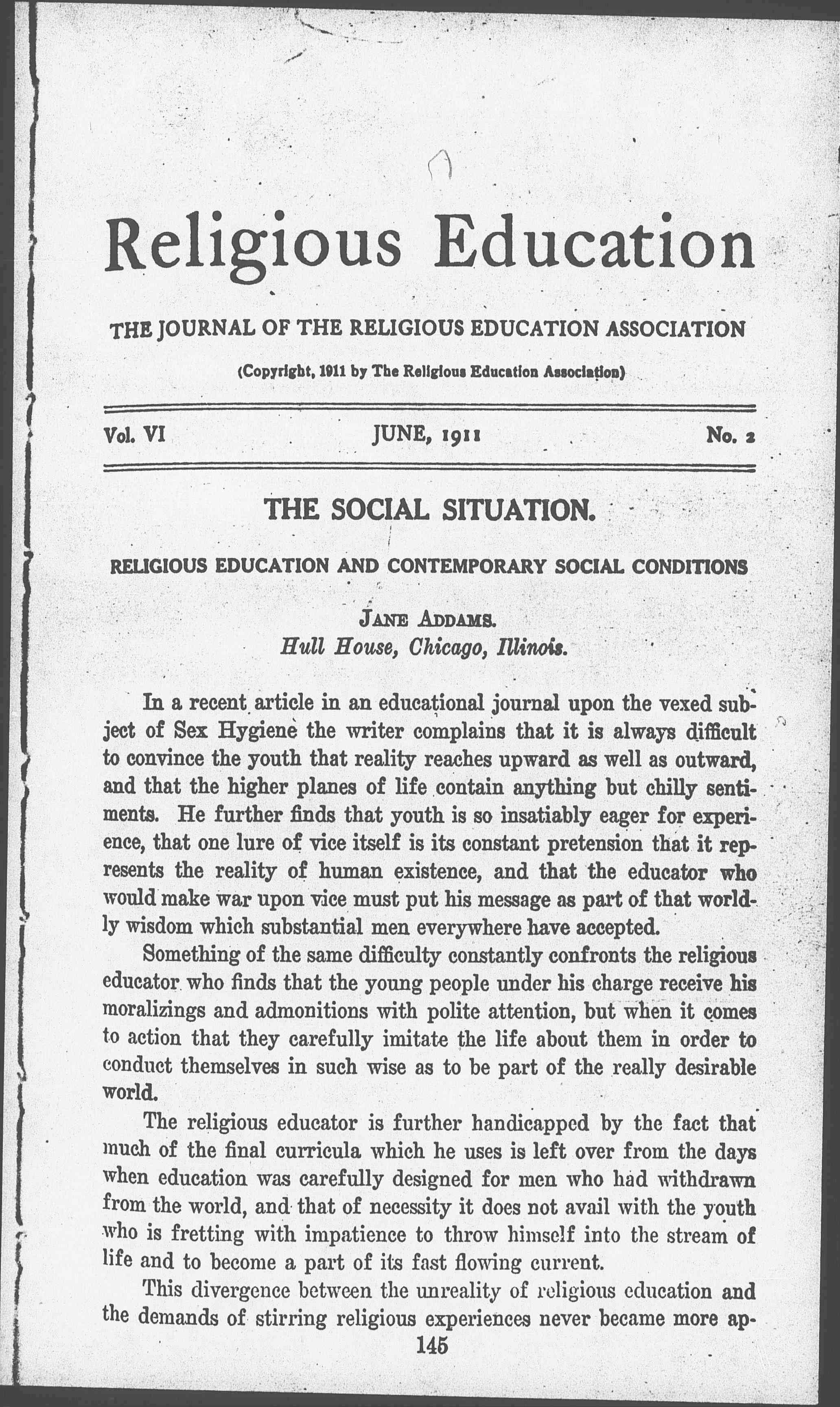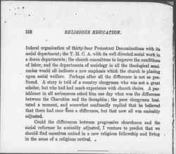 This divergence between the unreality of religious education and the demands of stirring religious experiences never became more apparent [page 2] than it did in England and America during the last decade of the past century. The religious educator lost hundreds of young men and women who by training and temperament should have gone into the ministry or the missionary field, simply because his statements appeared to them as magnificent pieces of self-assertion totally unrelated to the world.