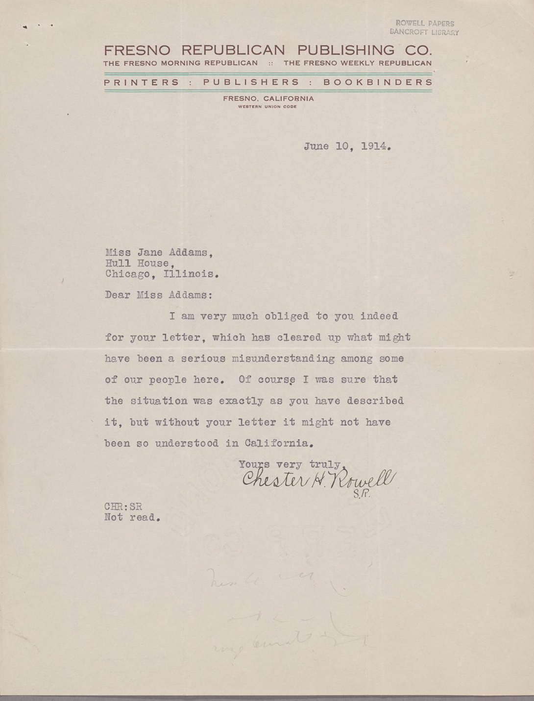 Chester H. Rowell [signed]