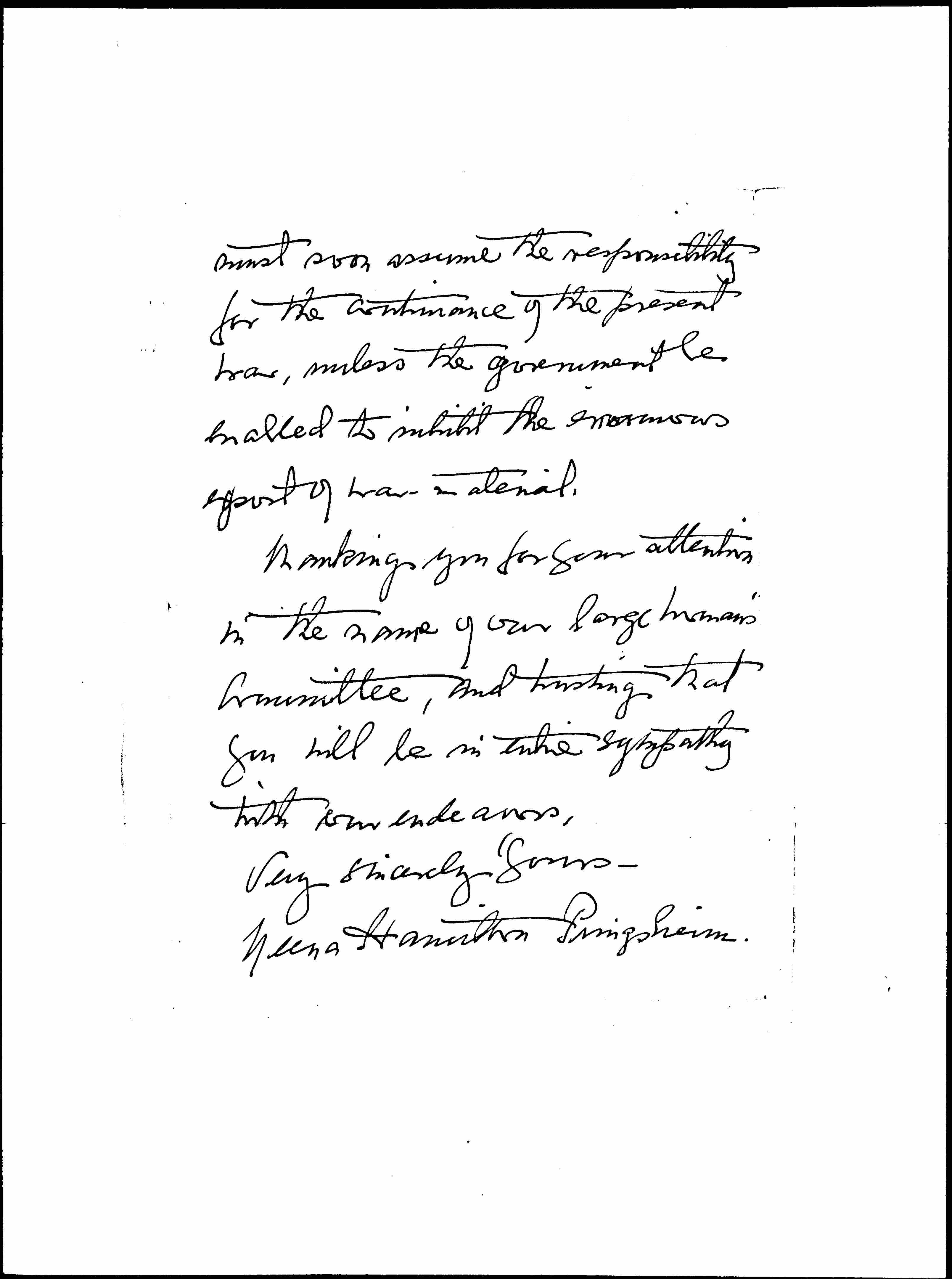 A large number of Americans are now intensely interested in the matter, as we feel that our country [page 4] must soon assume the responsibility for the continuance of the present war, unless the government be enabled to inhibit the enormous export of war-material.