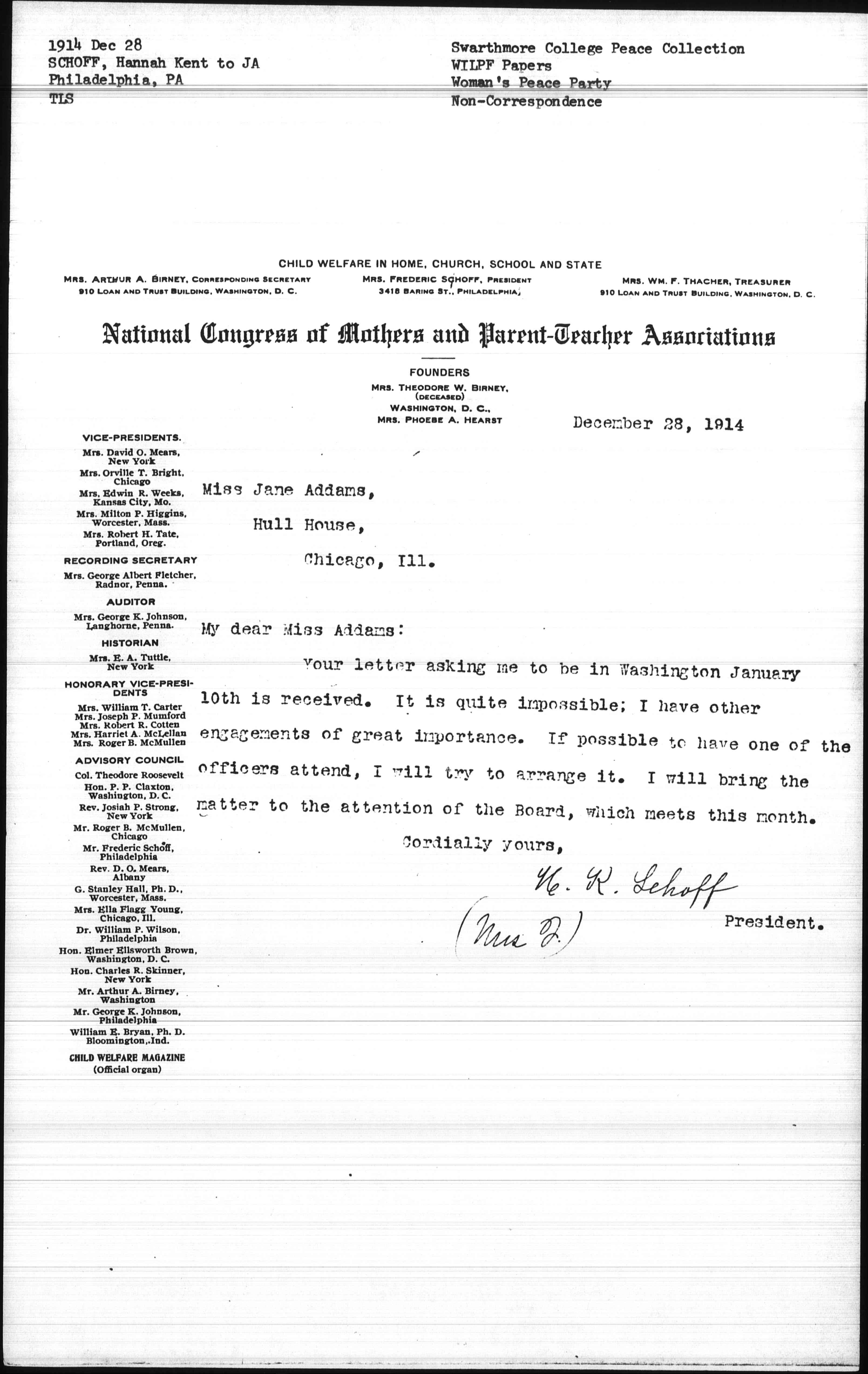 My dear Miss Addams: