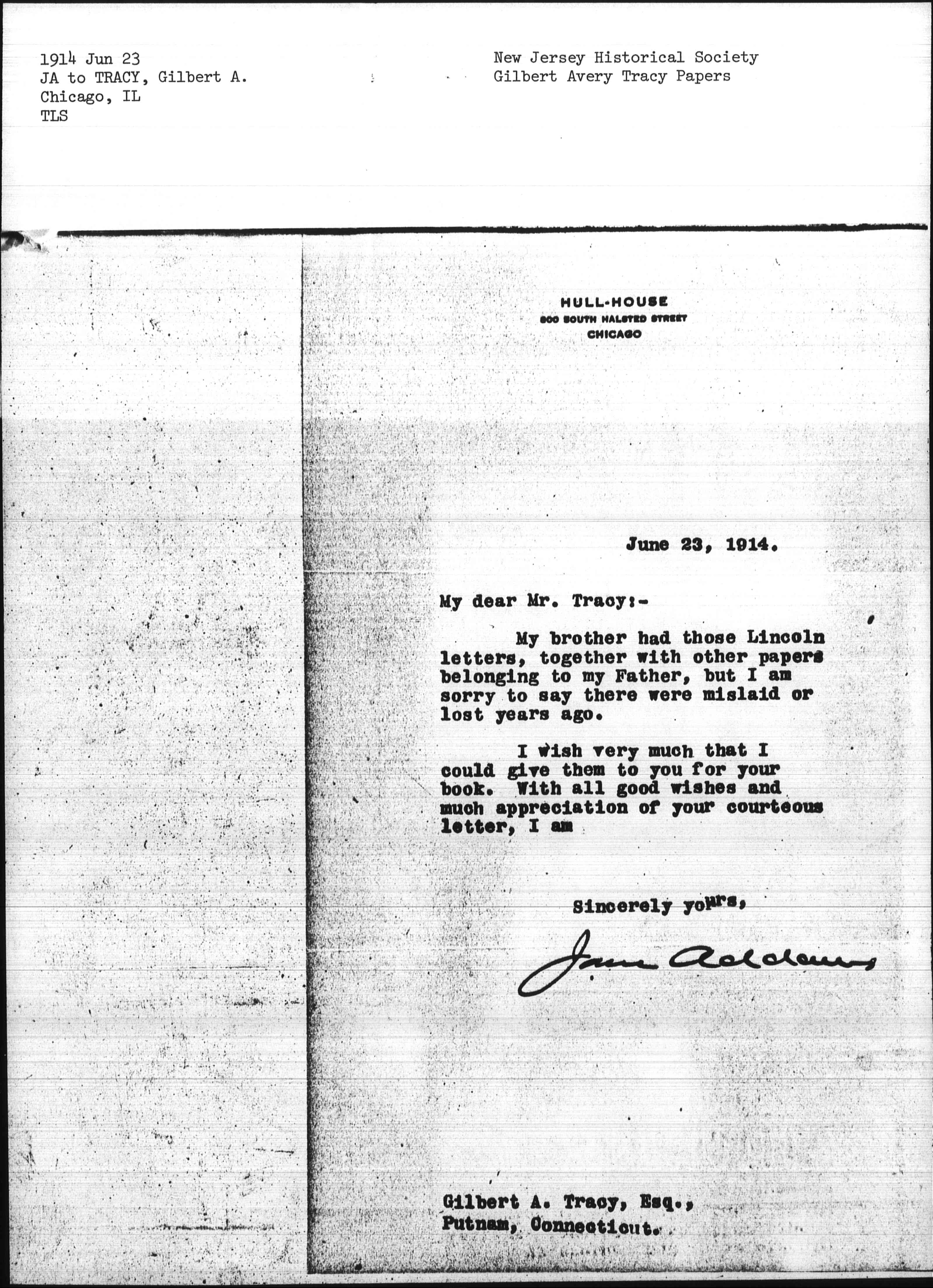 Jane Addams [signed]