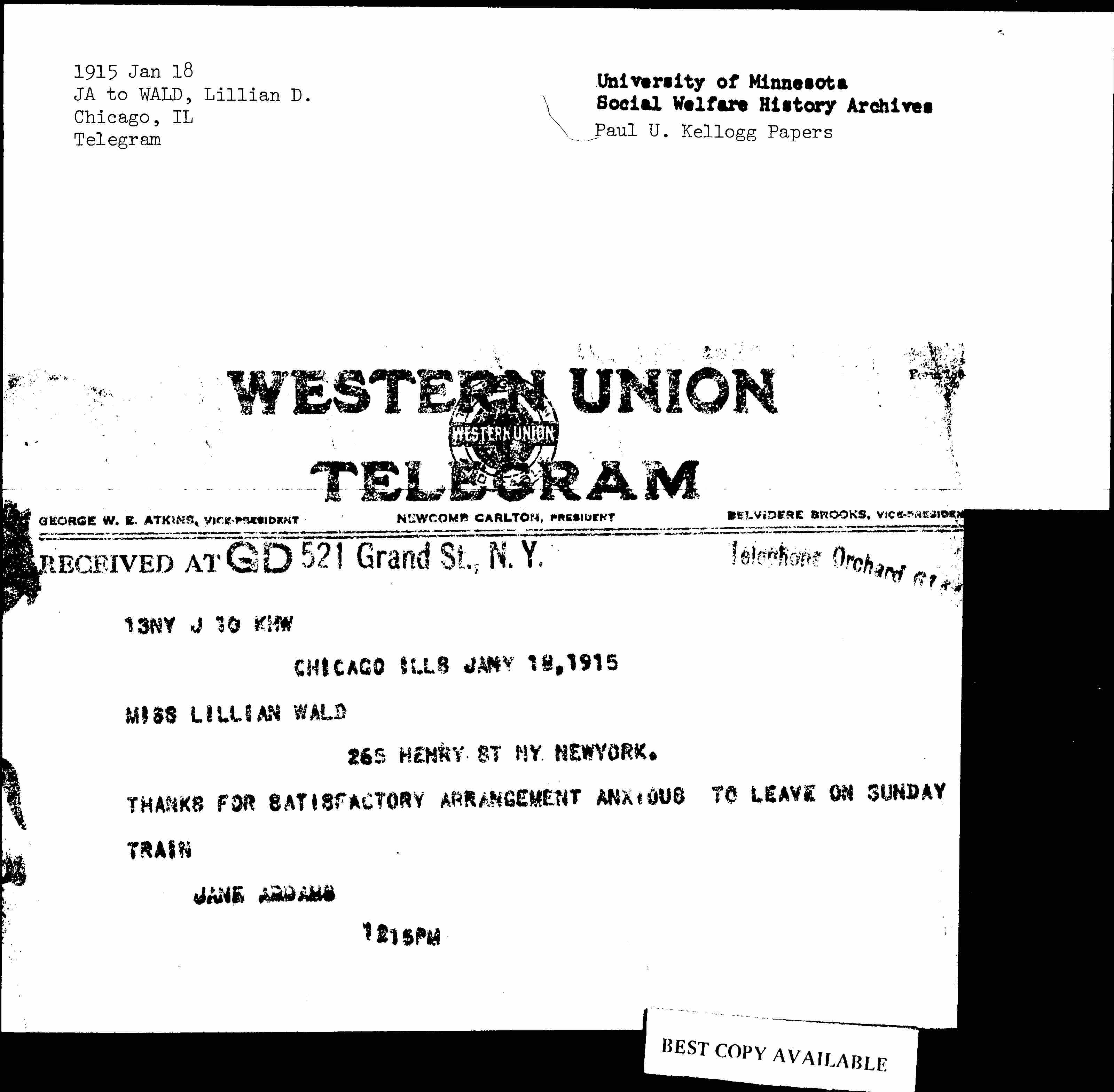 RECEIVED AT 521 Grand St., N.Y. [stamped]