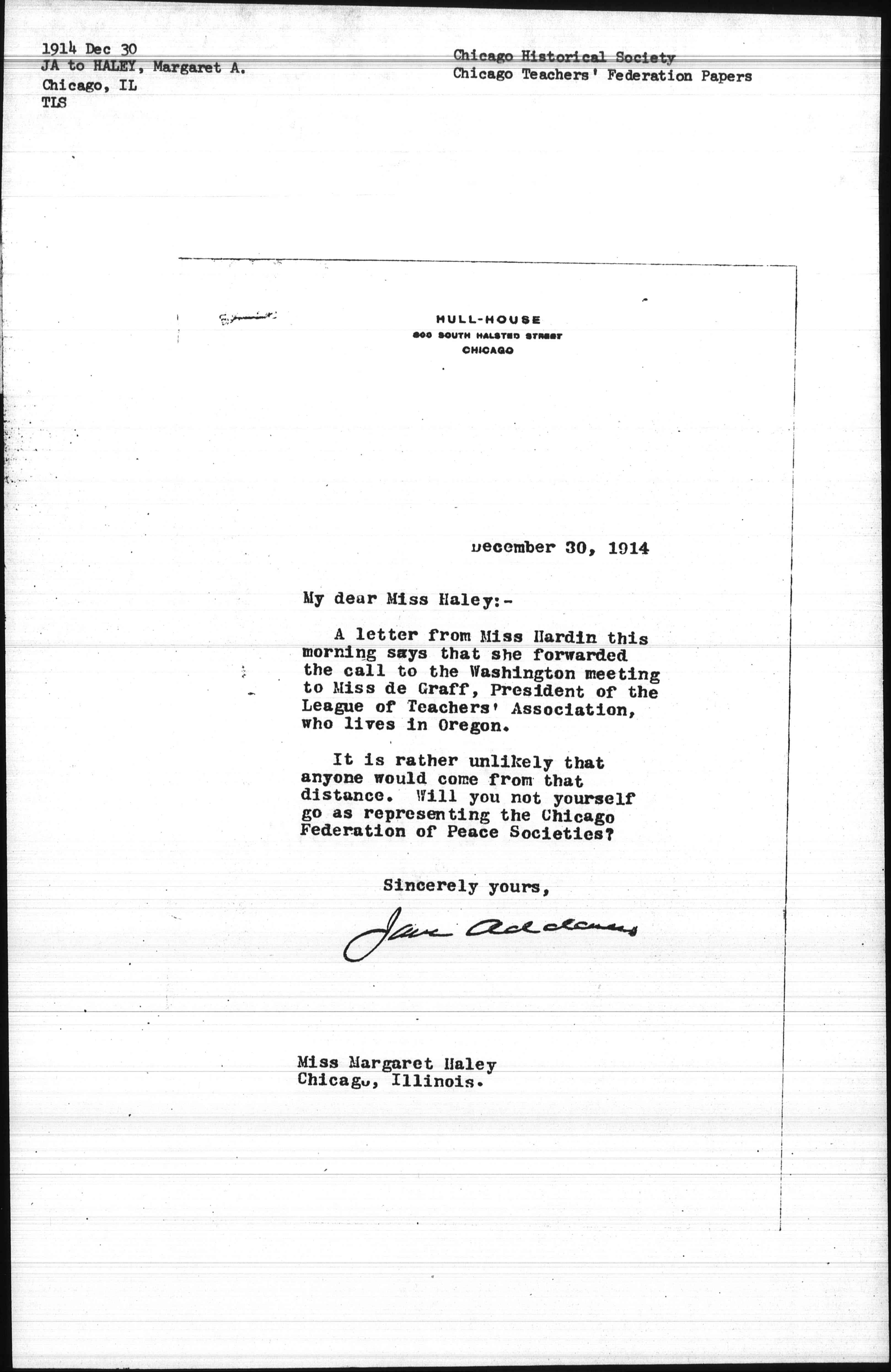 Jane Addams [signed]