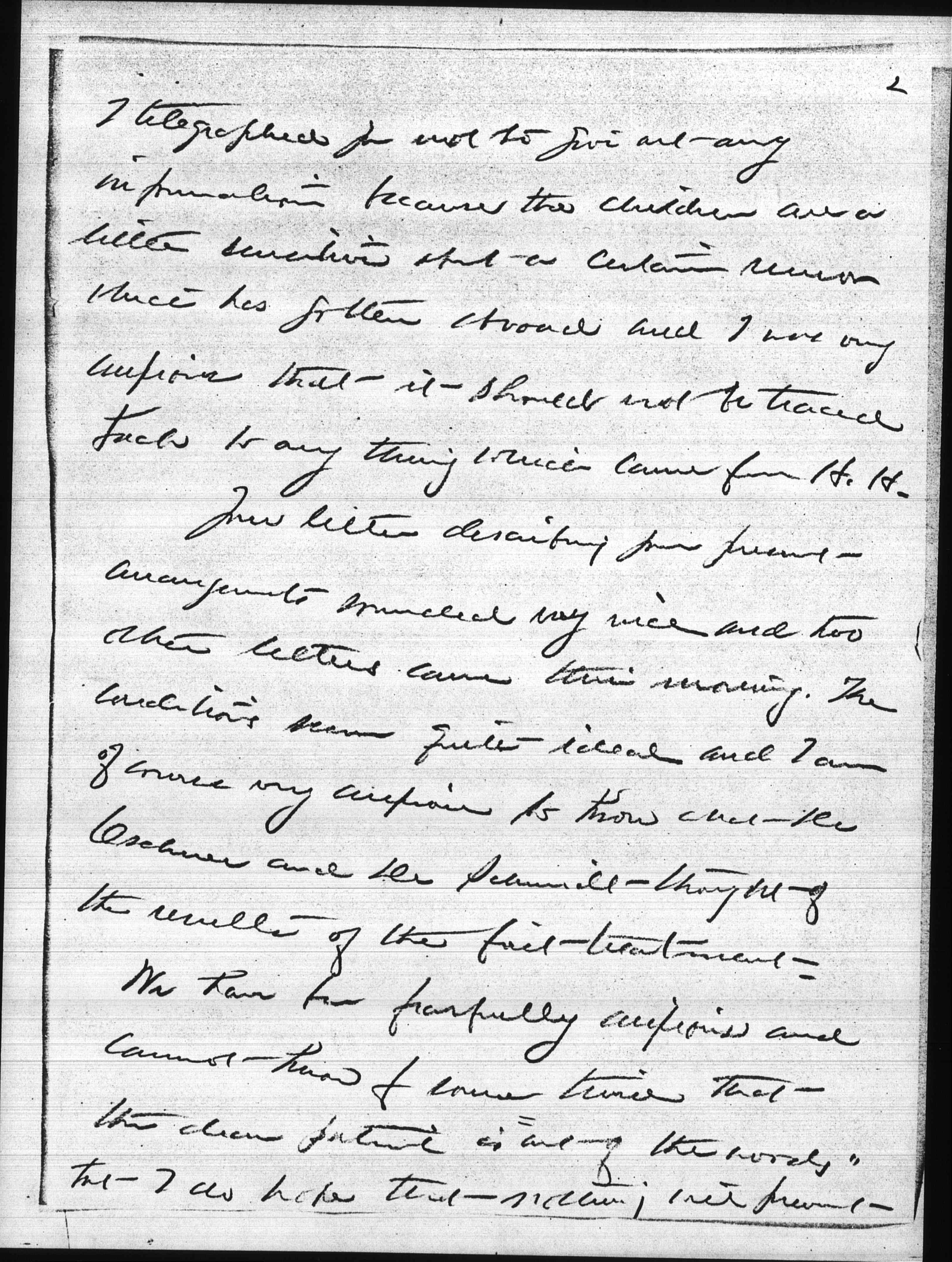 I telegraphed you not to give out any information because the children are a little sensitive about a certain rumor which has gotten about and I was very anxious that it should not be traced back to any thing which came from H. H.