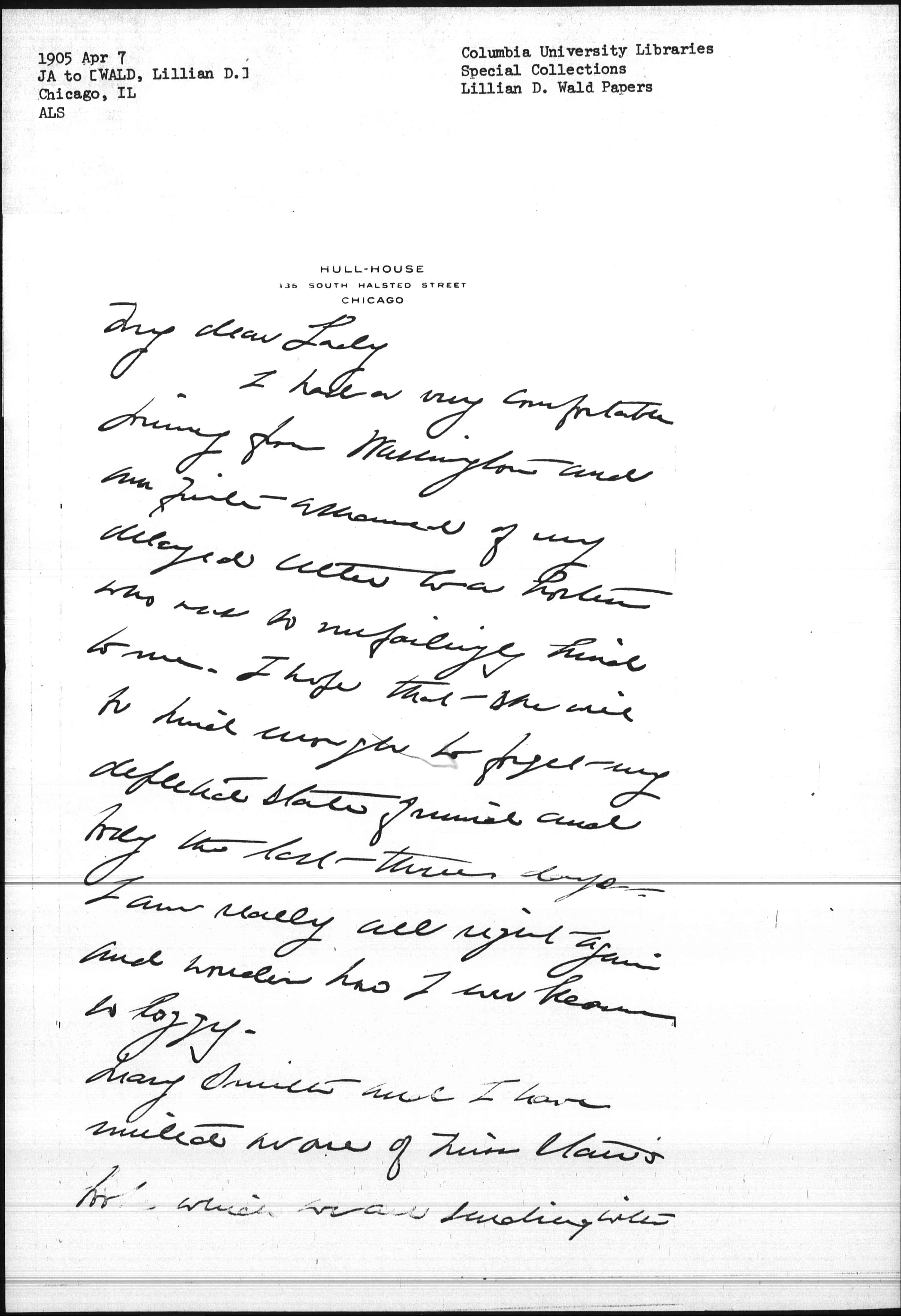 I had a very comfortable journey from Washington and am quite ashamed of my delayed letter to a hostess who was so unfailingly kind to me. I hope that she will be kind enough to forget my depleted state of mind and body the last three days. I am really all right again and wonder how I ever became so foggy.