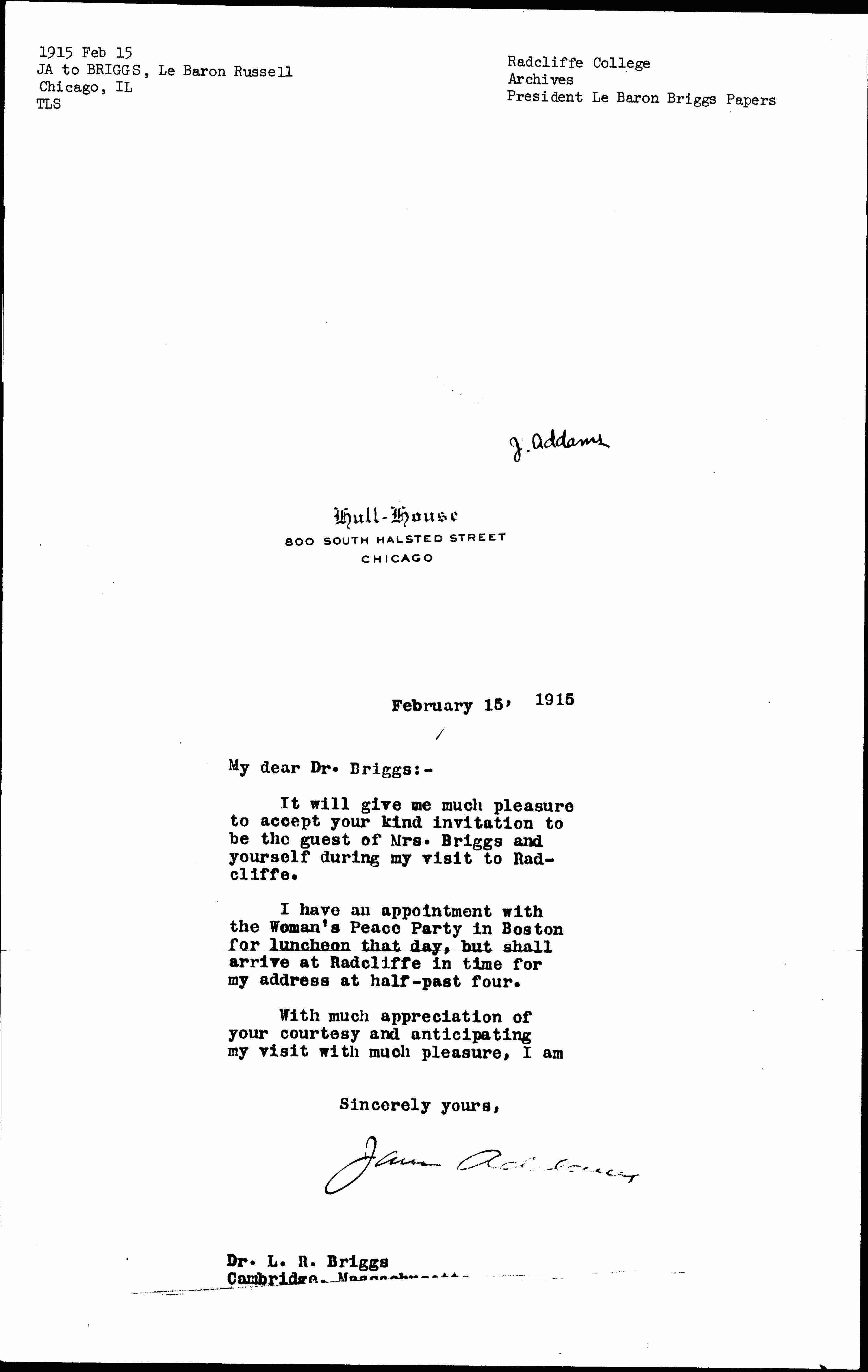 Jane Addams [signed]