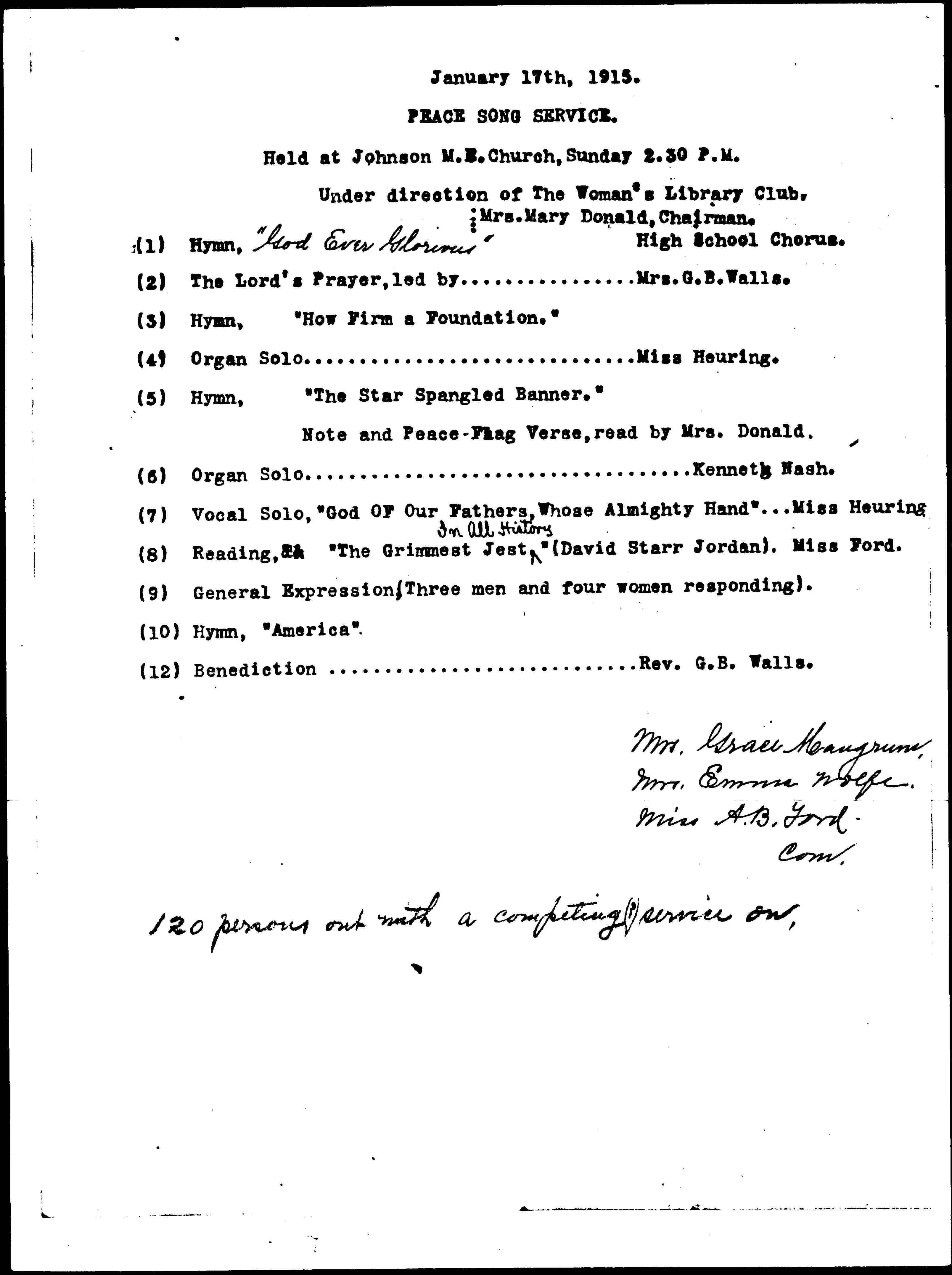 Note and Peace-Flag Verse, read by Mrs. Donald.