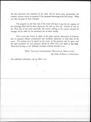 This is your last chance to object to the great expense destruction of business, loss of property without compensation and exorbitant assessment to both sides of the street. The petition must be signed by the owner of the property, not by agent, and the legal description of your property should be taken from your deed or tax book. Then send the same in the addressed envelope enclosed herewith to us.