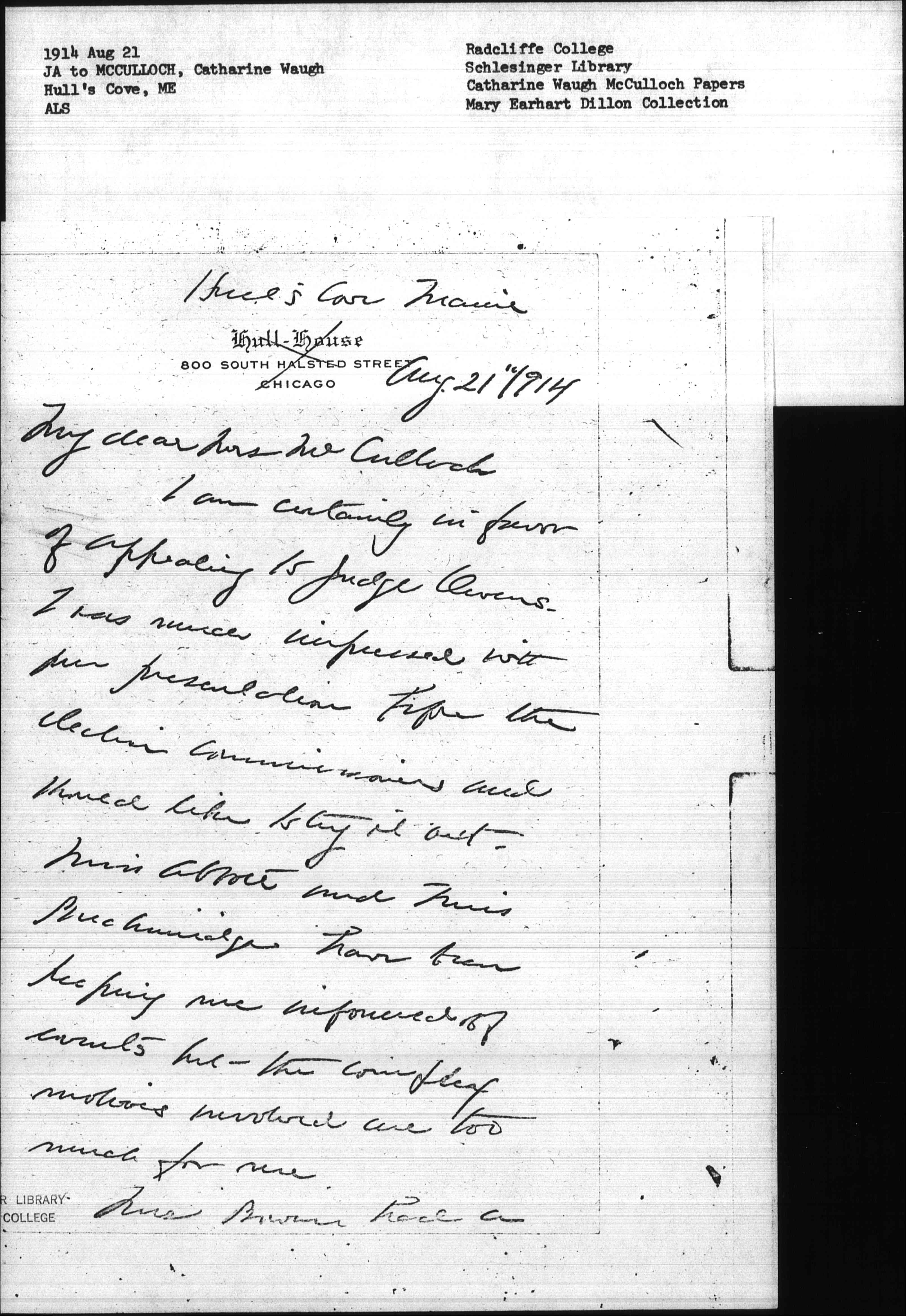 I am certainly in favor of appealing to Judge Owens. I was much impressed with your presentation before the election commission and should like to try it out. Miss Abbott and Miss Breckinridge have been keeping me informed of events but the complex motions involved are too much for me.