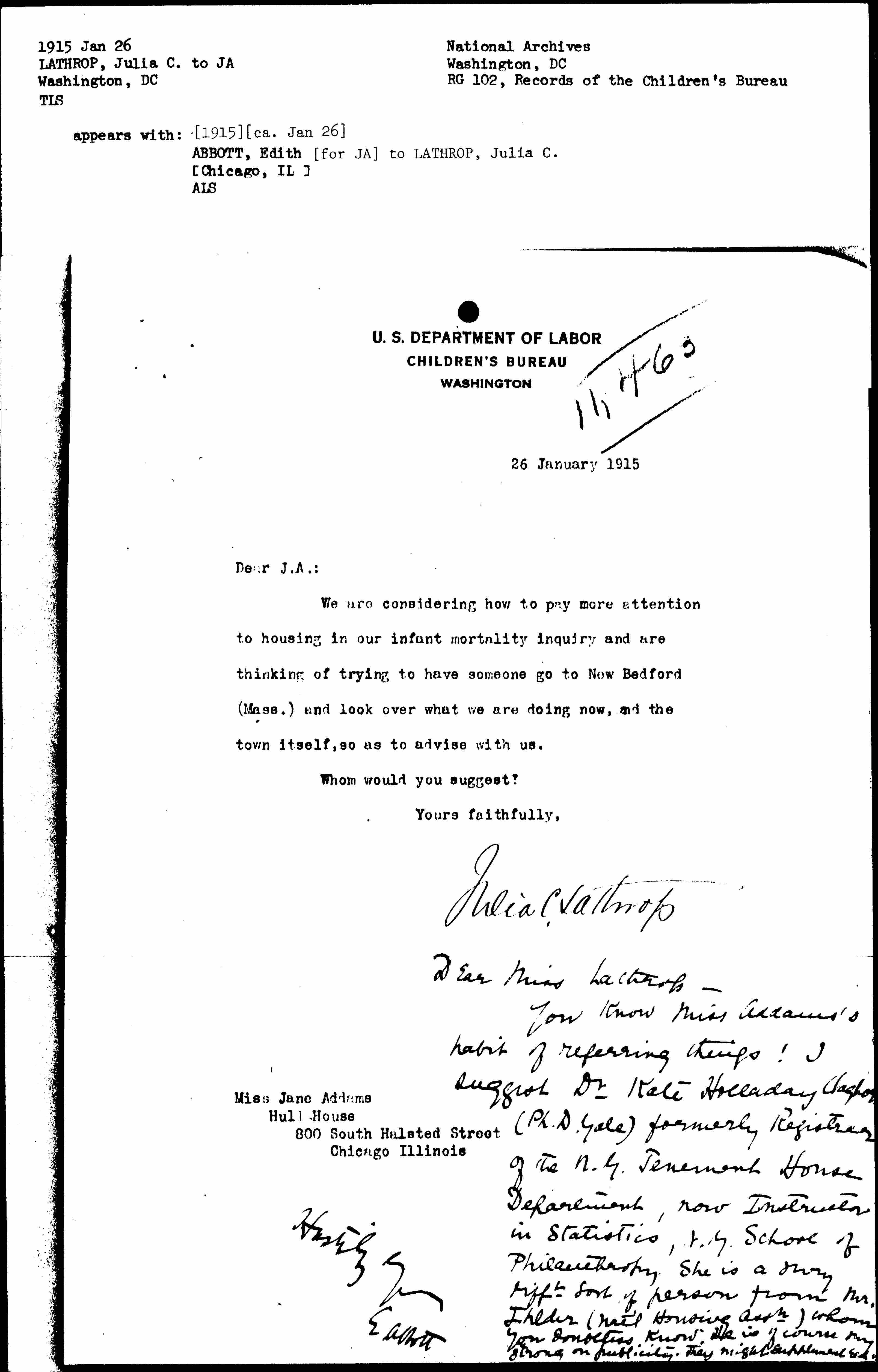 We are considering how to pay more attention to housing in our infant mortality inquiry and are thinking of trying to have someone go to New Bedford (Mass.) and look over what we are doing now, and the town itself, so as to advise with us.
