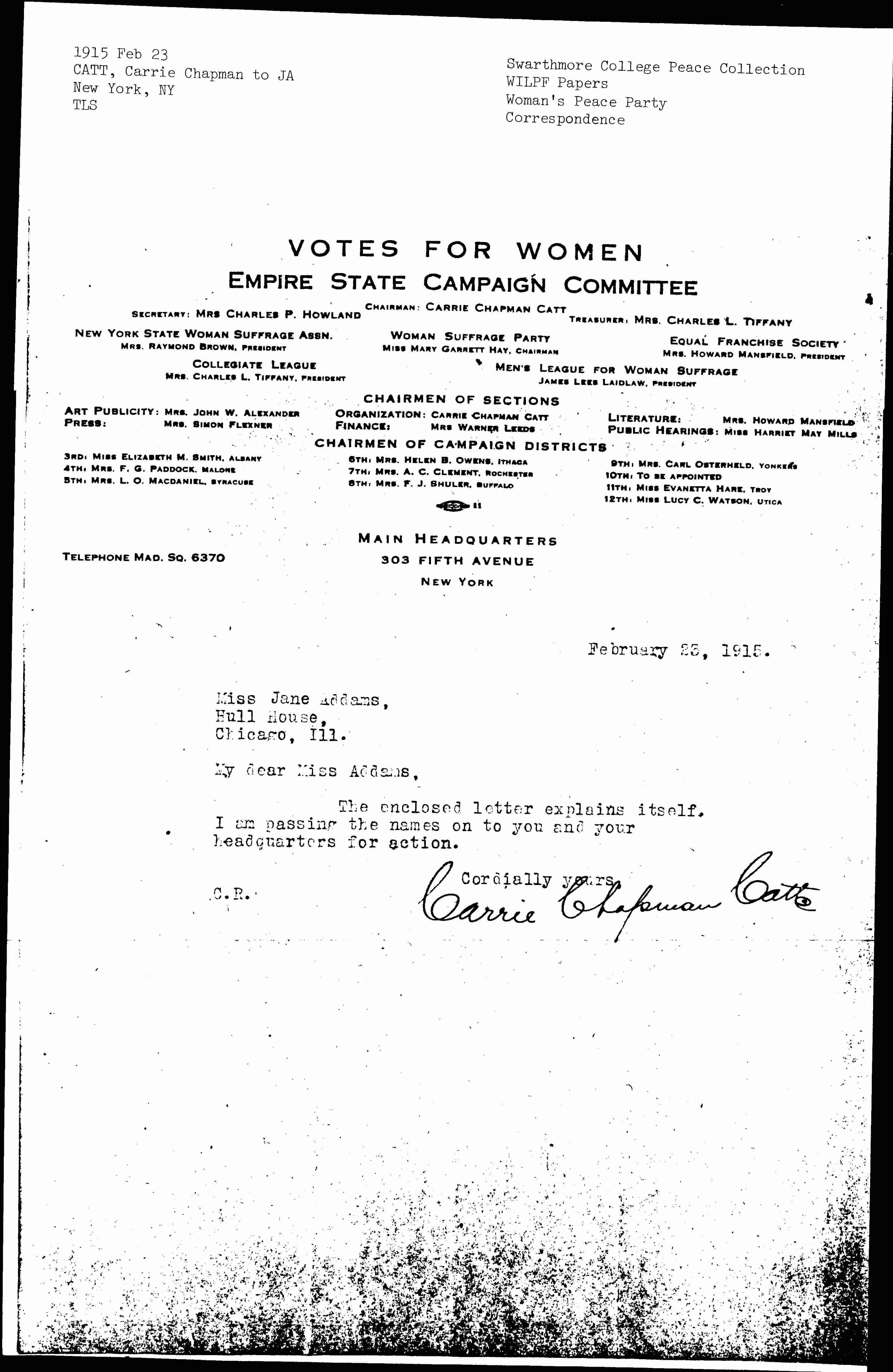 Carrie Chapman Catt [signed]