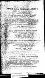 What is the way of the Christian in War time? Can War ever be right? To ask these questions -- and we have all been asking them -- is perhaps to make too large an assumption. It is to assume that, in itself, war is not a good thing; and there are people who argue that it is good, absolutely good, good in itself. But the number of these people in our own country is, I believe, small, and of that small number fewer still are found who have so truly the courage of their opinion as to propose the making of war for its own sake, and to refrain from satisfaction because at the beginning of August, 1914, Sir Edward Grey exhausted every means open to him to secure peace. I shall not, therefore, discuss here the view that war is an absolute good, though it is a perfectly logical and comprehensible view. It is more to the purpose in addressing Christian people, to ask whether war may not sometimes be a necessary evil, or even in comparison with some other alternative, relatively good.