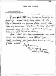 My graduate work both at Michigan and Columbia universities included International Law, under Ex President Angell and Professor John Bassett Moore respectively, and the other subjects in which I was especially interested were History, Political and Social Science and Comparative Government. During the last year or two I have been lecturing on Suffrage and on various Social Problems, in addition to my regular college class-work. [page 2]
