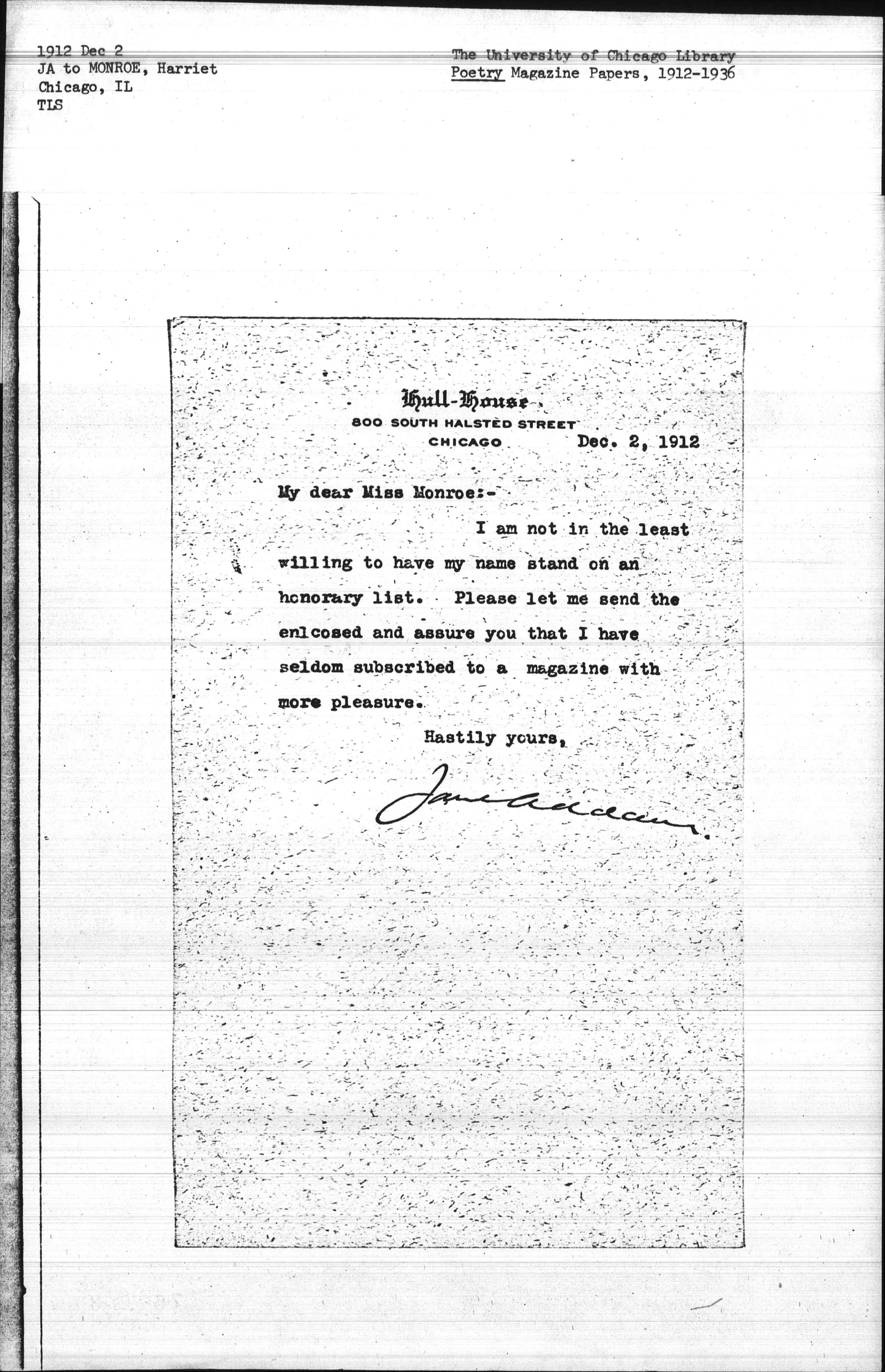 Jane Addams [signed]