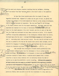 It is hard to forecast the results upon the social order if Christians from the beginning had followed and had encompassed the harlot with the charity and loving kindness <of their master> but it is certainly easy to point [page 2] out the moral and religious disaster resulting from her exclusion, fostering the "I am holier than thou" attitude, which is the inmost canker of the spiritual life. [written in left margin opposite this paragraph] results of exclusion