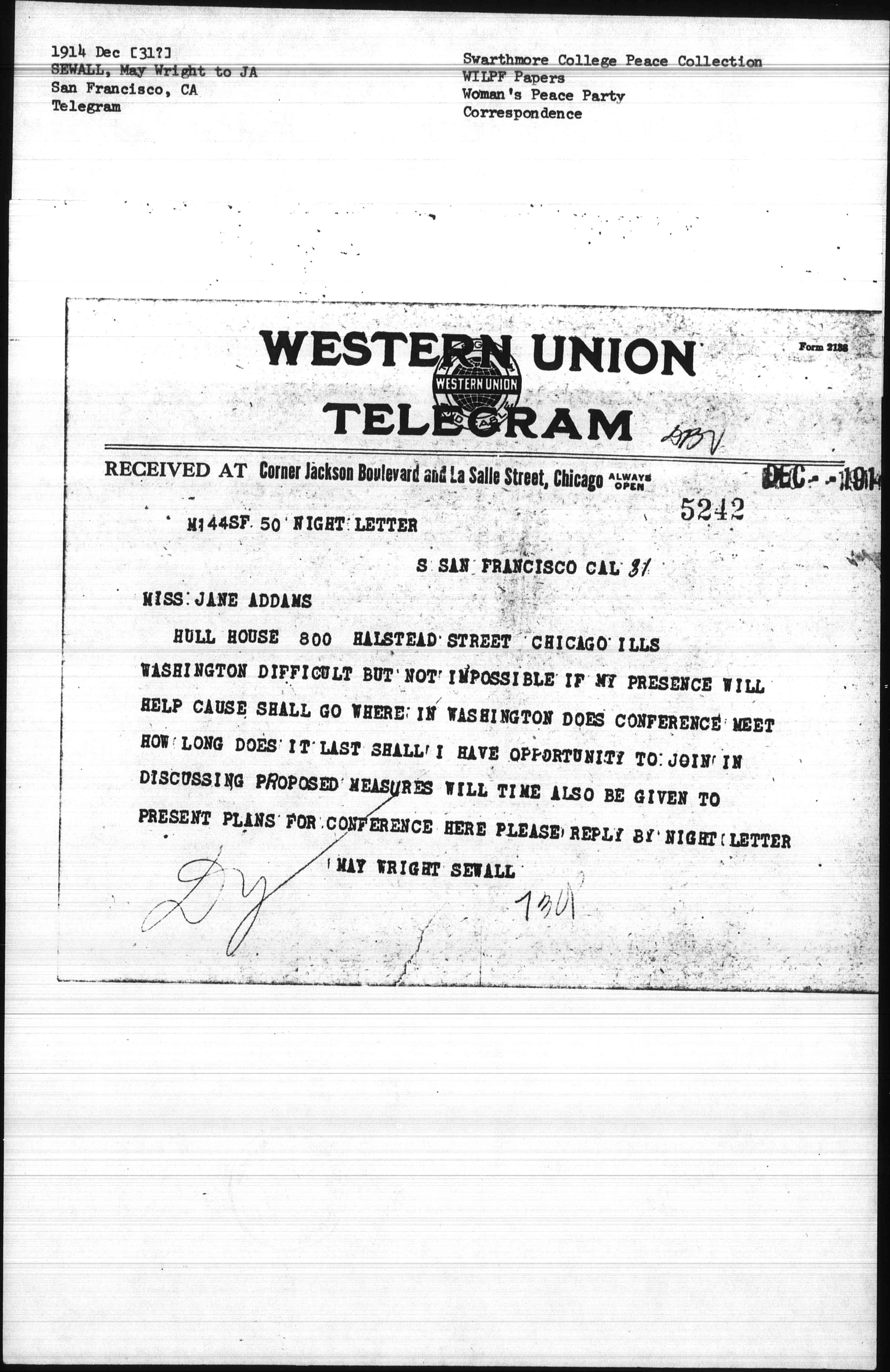 WASHINGTON DIFFICULT BUT NOT IMPOSSIBLE IF MY PRESENCE WILL HELP CAUSE SHALL GO WHERE IN WASHINGTON DOES CONFERENCE MEET HOW LONG DOES IT LAST SHALL I HAVE OPPORTUNITY TO JOIN IN DISCUSSING PROPOSED MEASURES WILL TIME ALSO BE GIVEN TO PRESENT PLANS FOR CONFERENCE HERE PLEASE RELY BY NIGHT LETTER