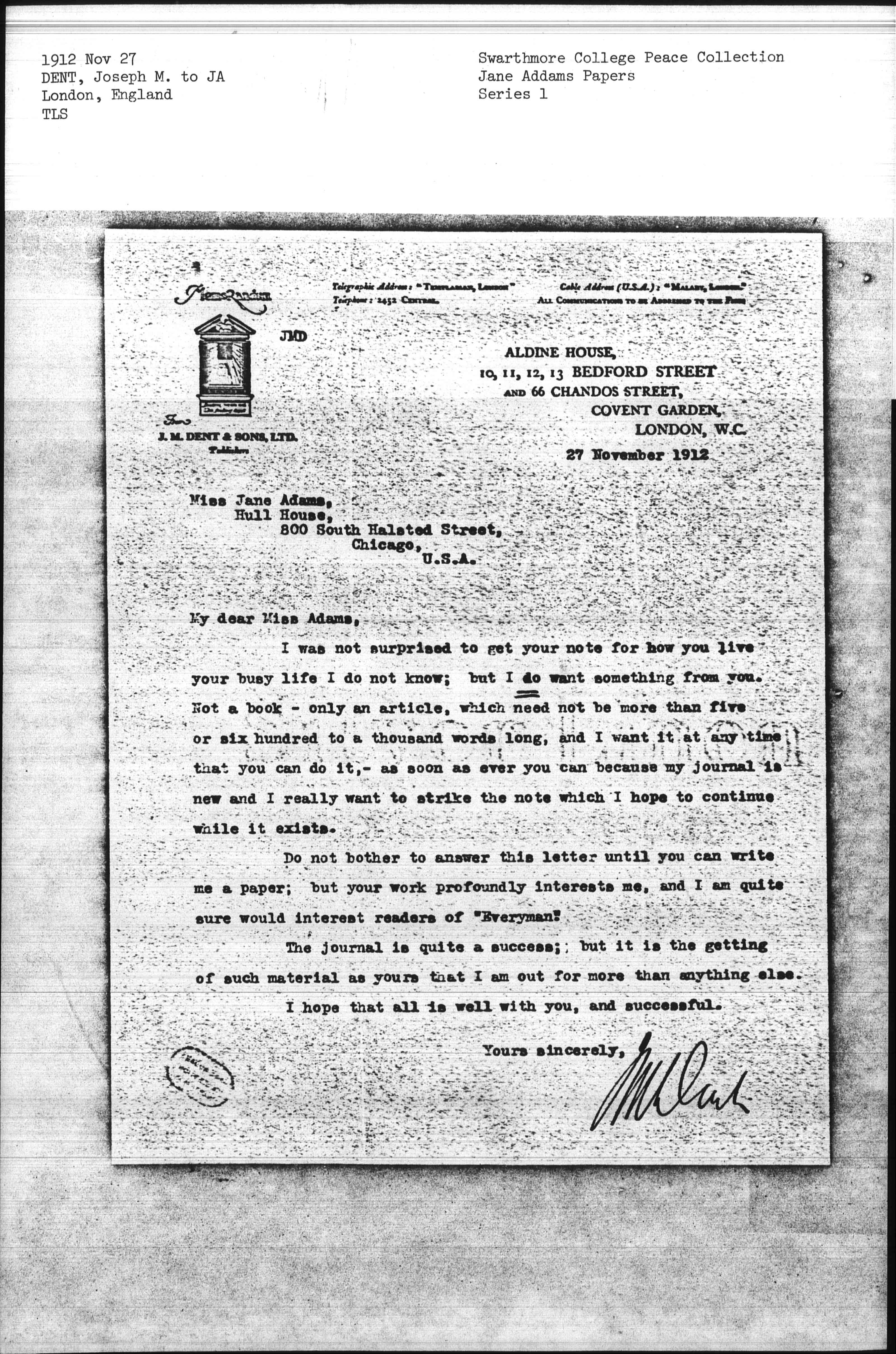 J. M. Dent [signed]